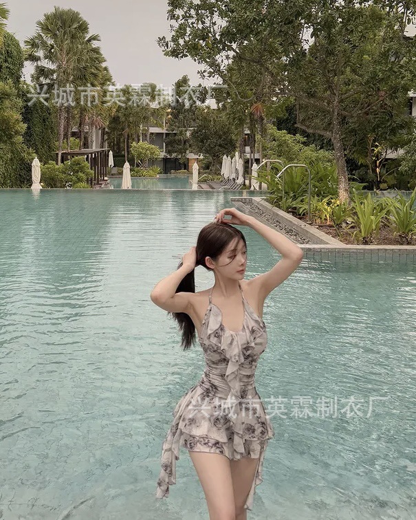 새로운 수영복 여성용 원피스 스커트 요정 벨리 커버 슬리밍 섹시한 한국 인스 타 그램 스타일 온천 수영복