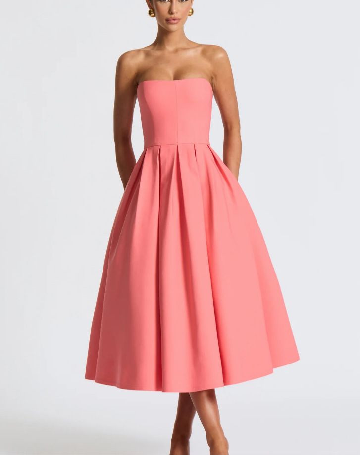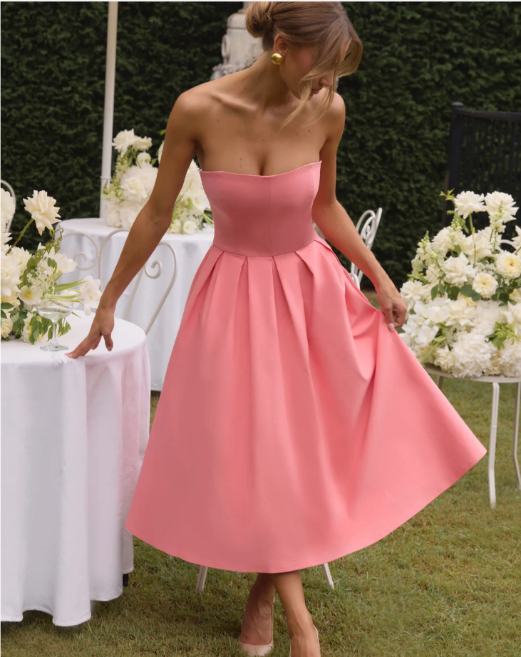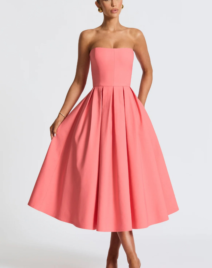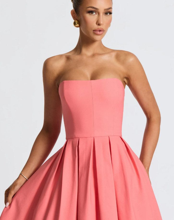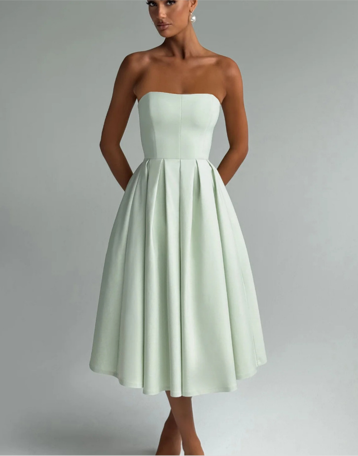 프랑스 연령 감소 오프 숄더 튜브-원피스 여성의 2025 여름 새로운 우아한 단색 주름 대형 원피스
