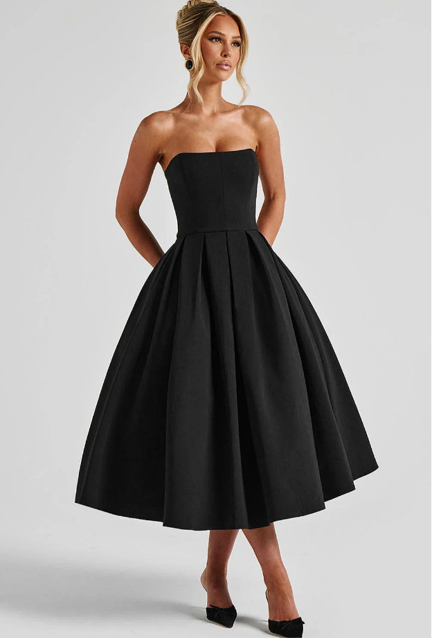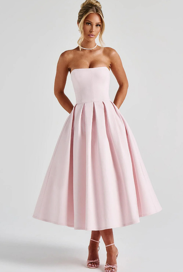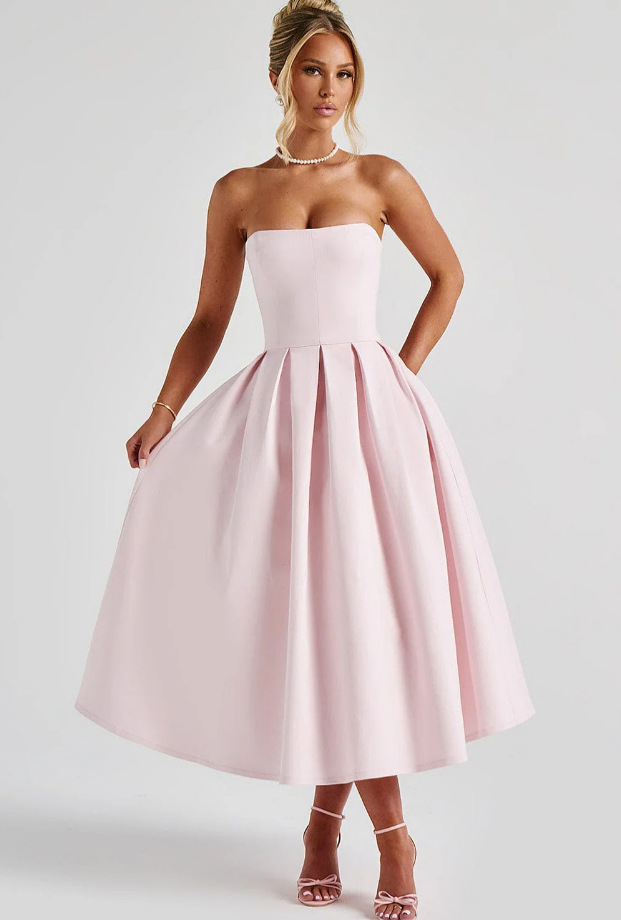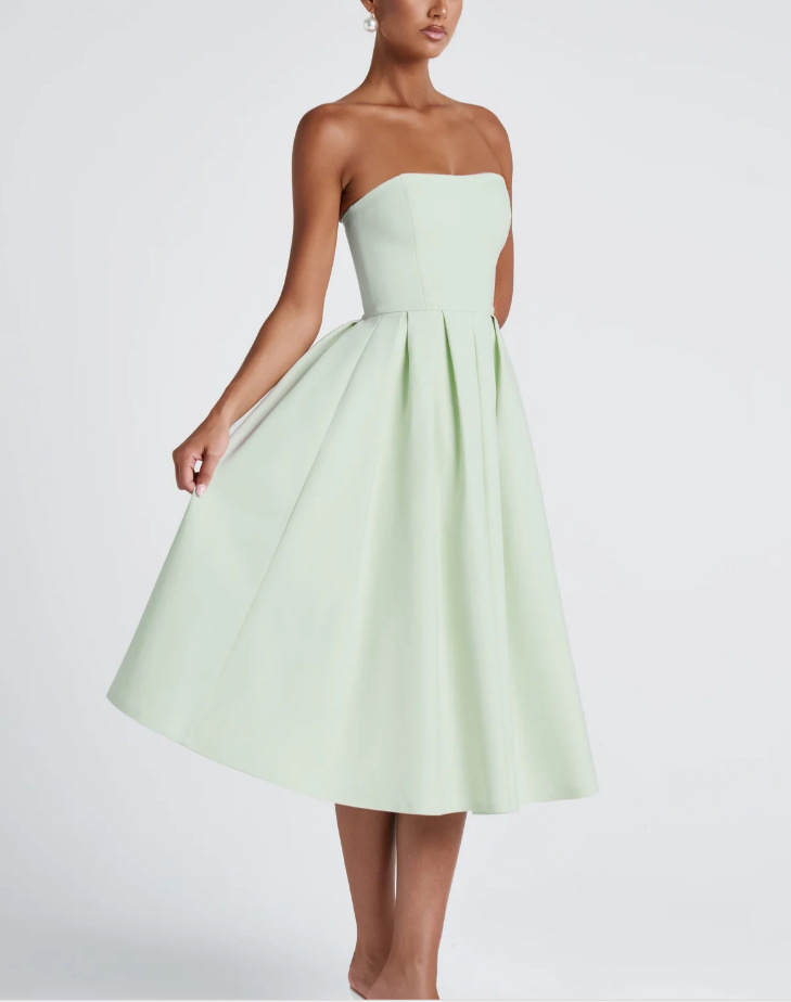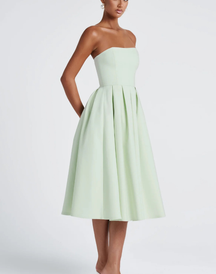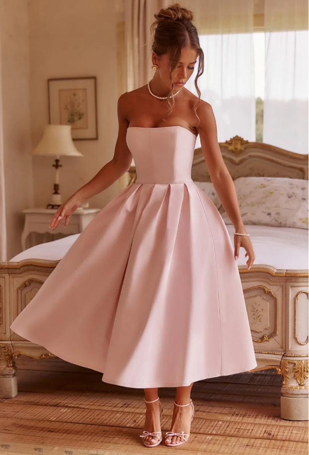 프랑스 연령 감소 오프 숄더 튜브-원피스 여성의 2025 여름 새로운 우아한 단색 주름 대형 원피스
