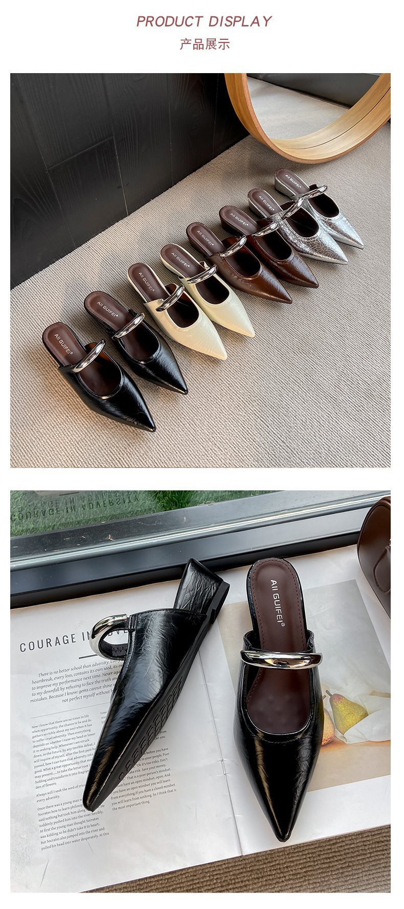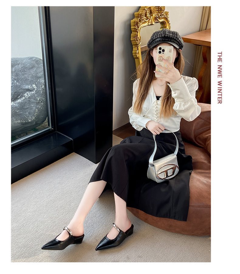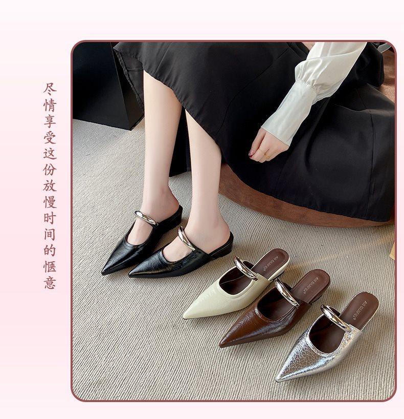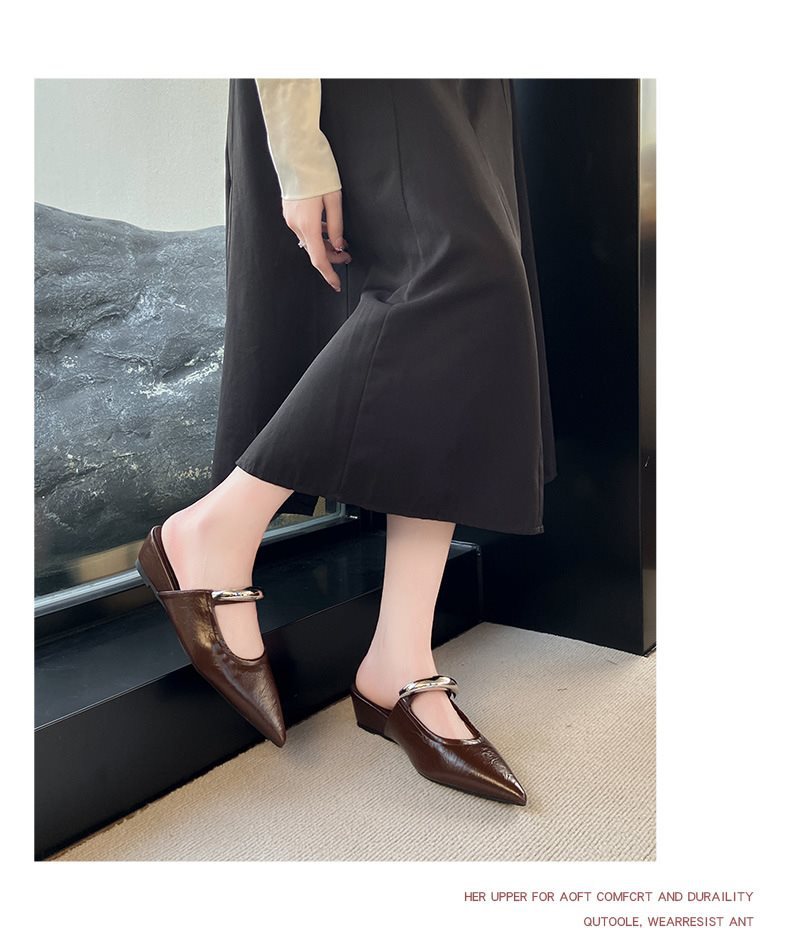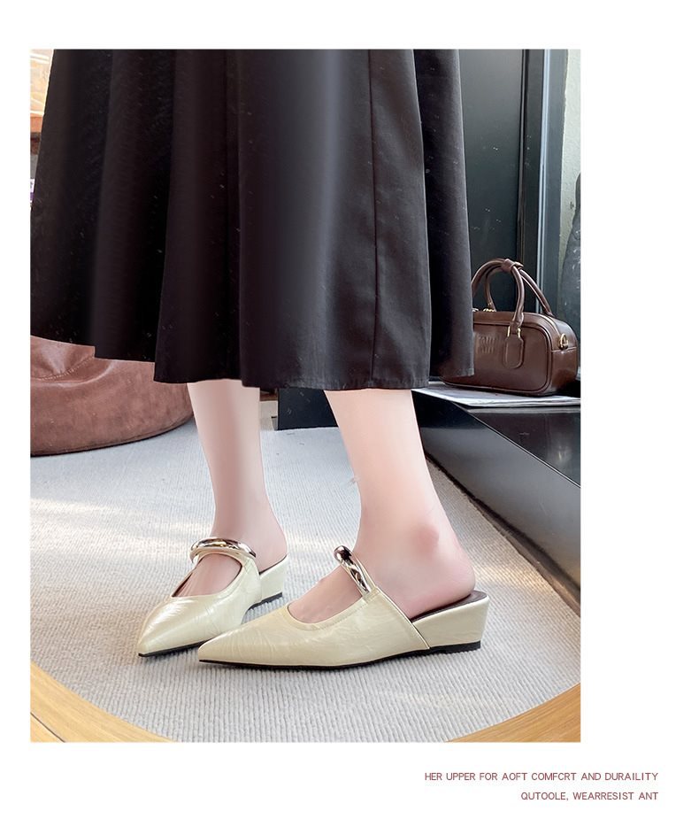 여성용 여름 아우터용 부드러운 밑창 금속 버클 프렌치 발가락 반슬리퍼 2025 웨지힐 포인티드 토 뮬 샌들 트렌디스토어 가기