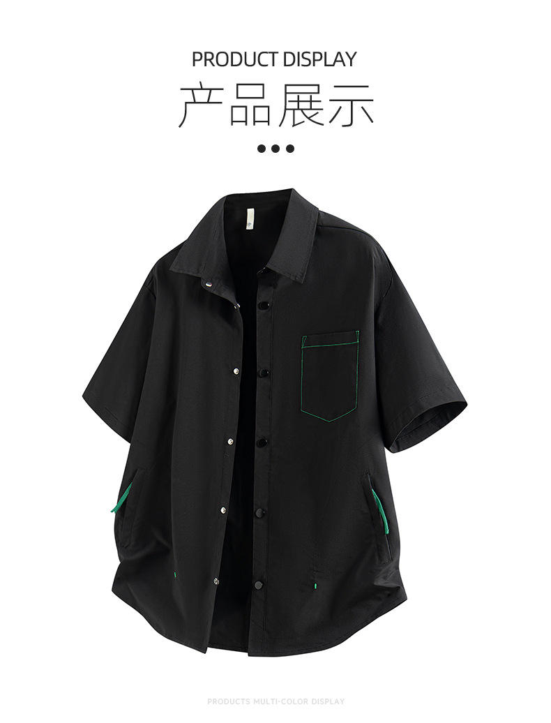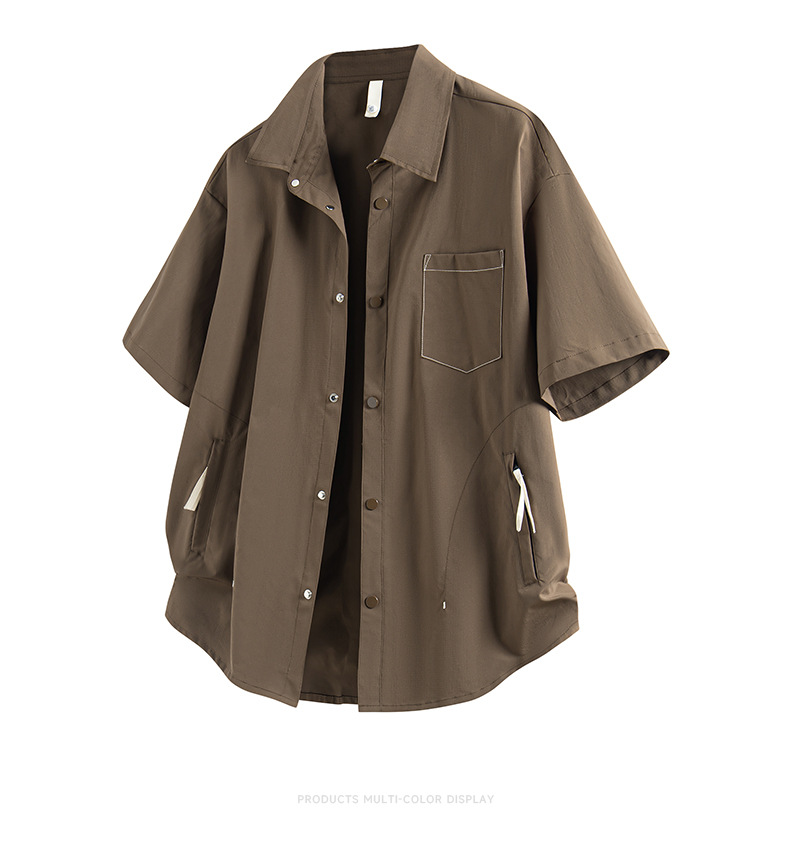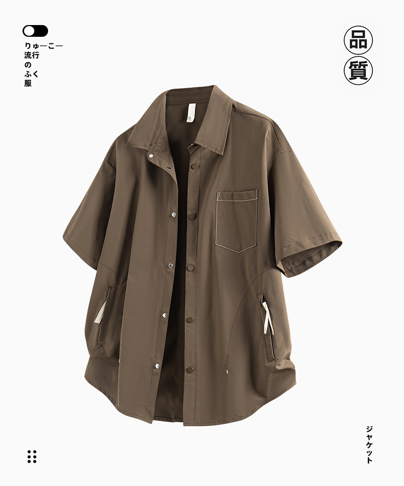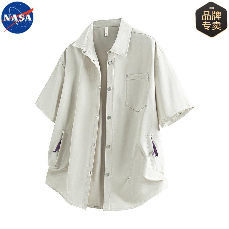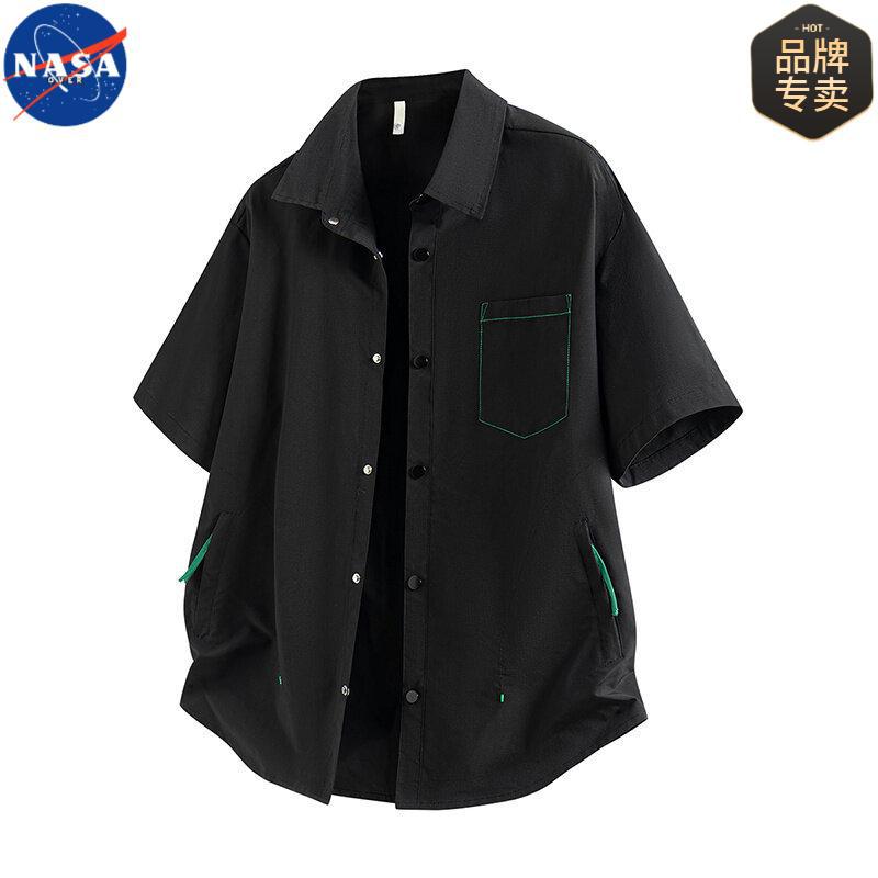 NASA 반팔 셔츠 남자 홍콩 스타일 레트로 청소년 지퍼 포켓 디자인 센스 니쉬 바이브 스타일 더피 잘 생긴 셔츠스토어 가기