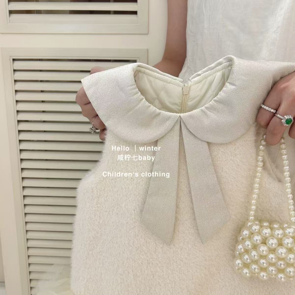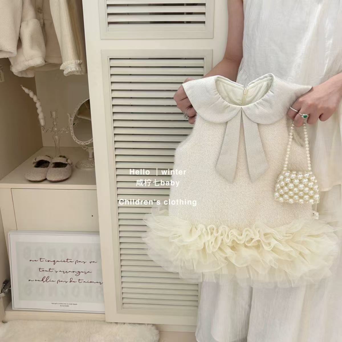 여자 샤넬 스타일 원피스 2024 가을과 겨울 새로운 아기 모직 조끼 공주 원피스스토어 가기