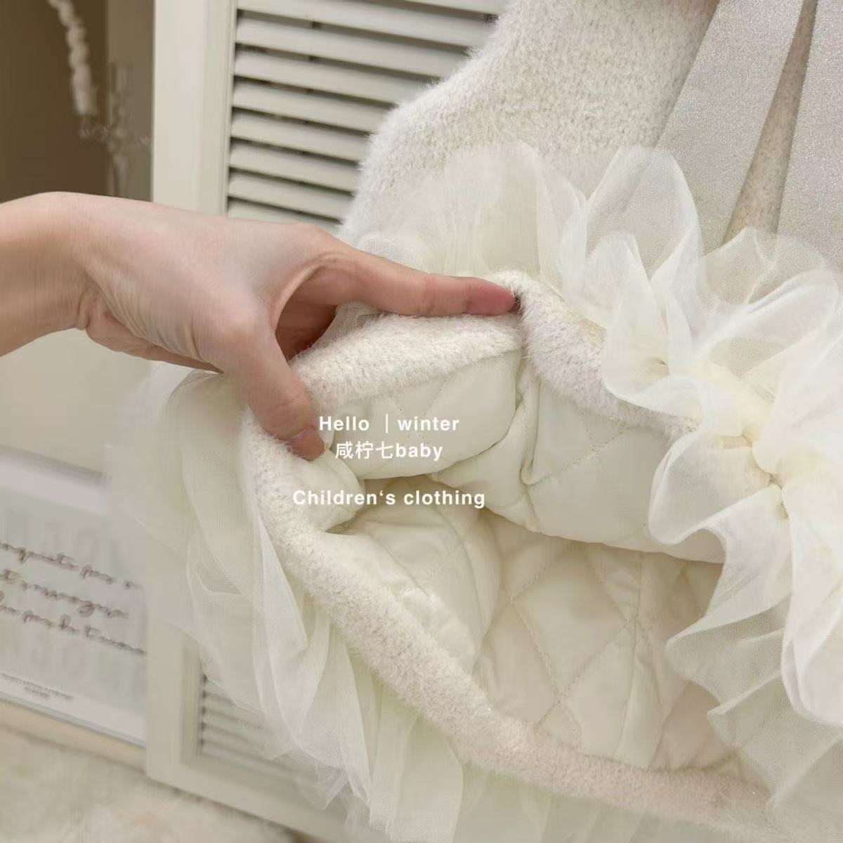 여자 샤넬 스타일 원피스 2024 가을과 겨울 새로운 아기 모직 조끼 공주 원피스