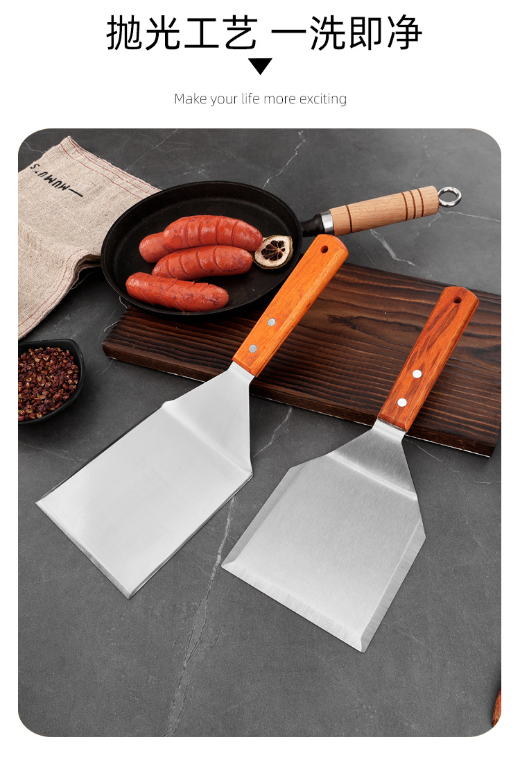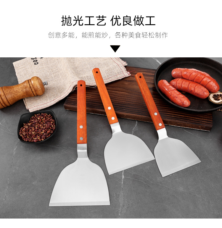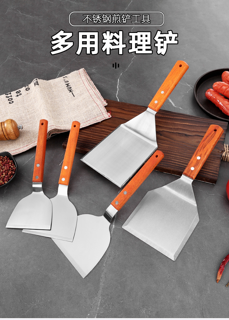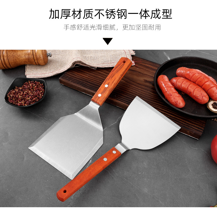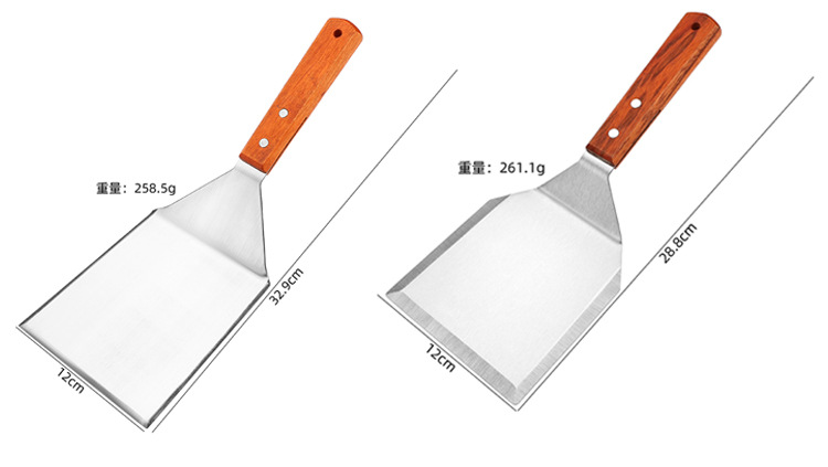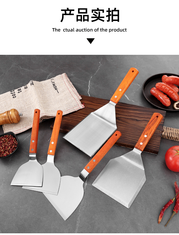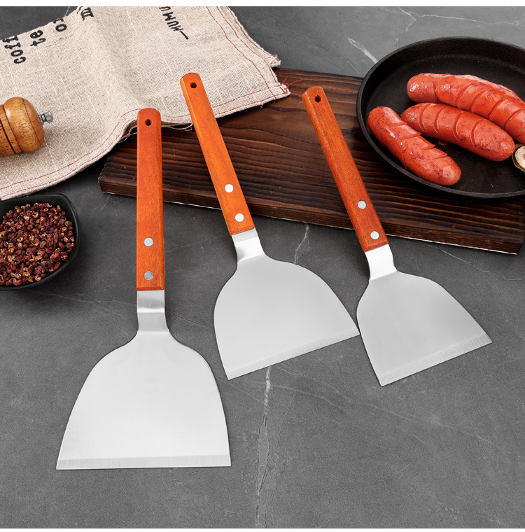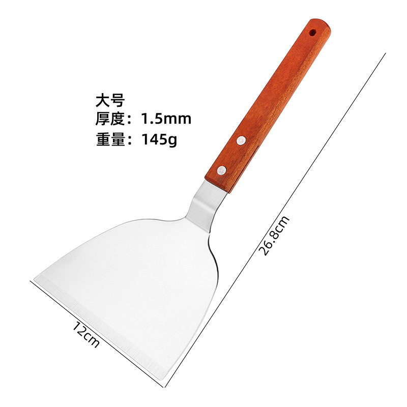 대형 주방용 스테인리스 나무 손잡이 조리용 주걱, 철판구이 주걱, 바베큐 팬케이크 도구, 피자 주걱, 요리용 바베큐 주걱스토어 가기