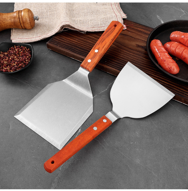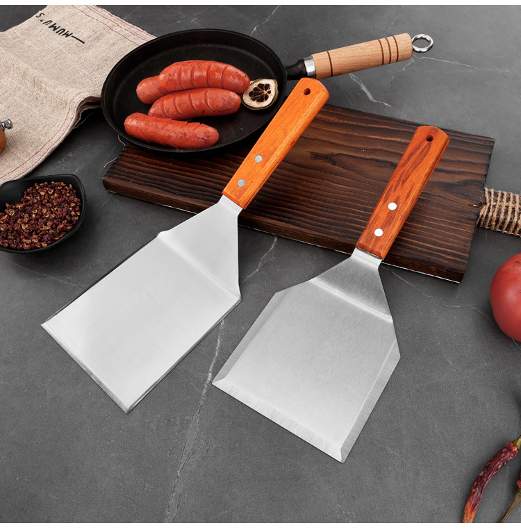 대형 주방용 스테인리스 나무 손잡이 조리용 주걱, 철판구이 주걱, 바베큐 팬케이크 도구, 피자 주걱, 요리용 바베큐 주걱