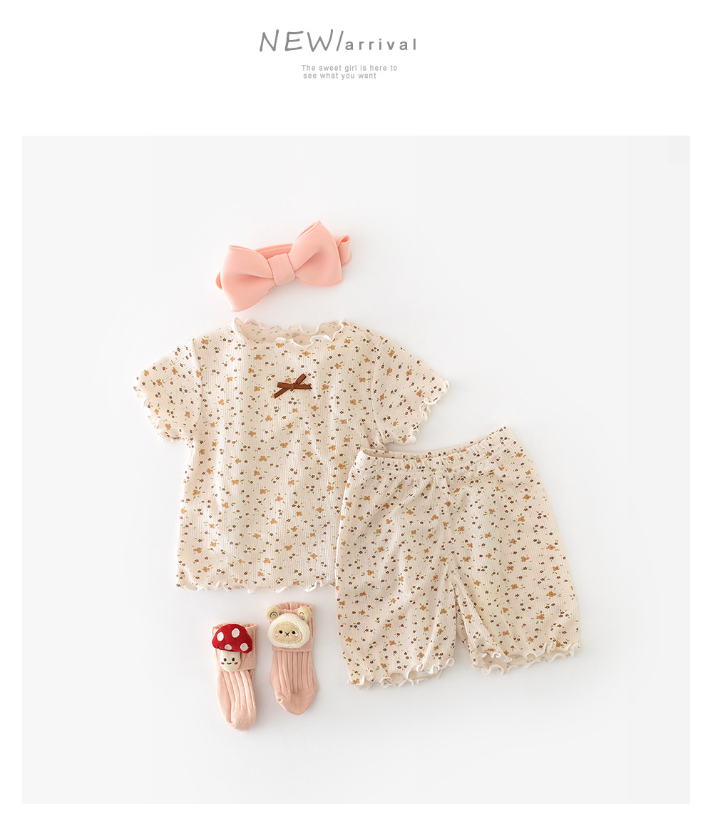 25 여름 한국 여자 작은 꽃 집 세트 아기 활 짧은 소매 풀오버 투피스 52871스토어 가기