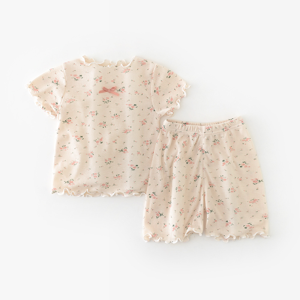 25 여름 한국 여자 작은 꽃 집 세트 아기 활 짧은 소매 풀오버 투피스 52871