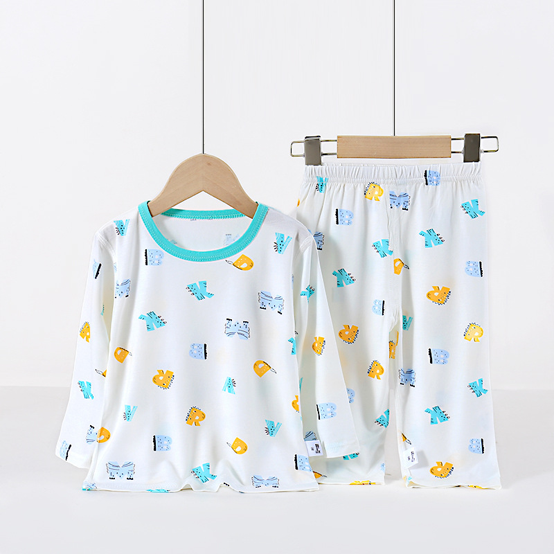 어린이 봄 여름 무봉제 가을옷 세트, 남아 여아용 만화 캐릭터 속옷, 홈웨어 투피스 세트, 무봉제 디자인스토어 가기
