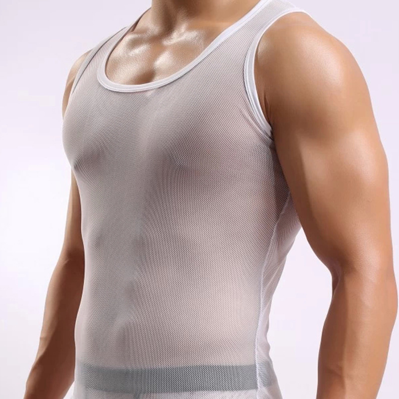 국경 간 남성 조끼 남성 얇은 완전 투명 섹시한 메쉬 조끼 남성 꽉 섹시한 속옷