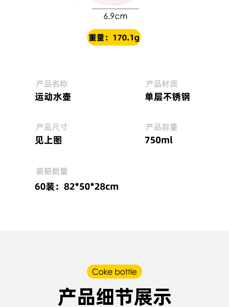 대외 무역 전용 304 단층 스테인레스 스틸 스포츠 물병 야외 휴대용 세련된 휴대용 컵 대용량 사이클링 물병