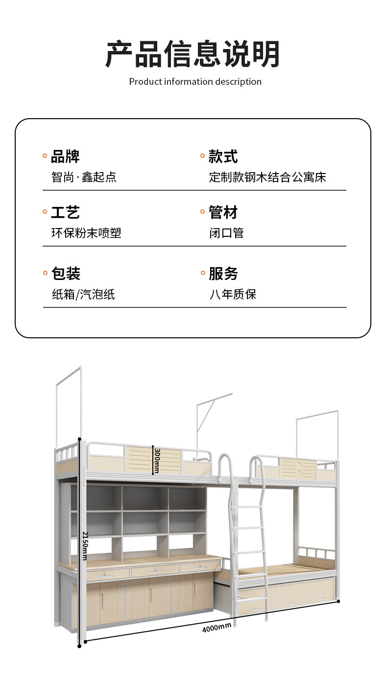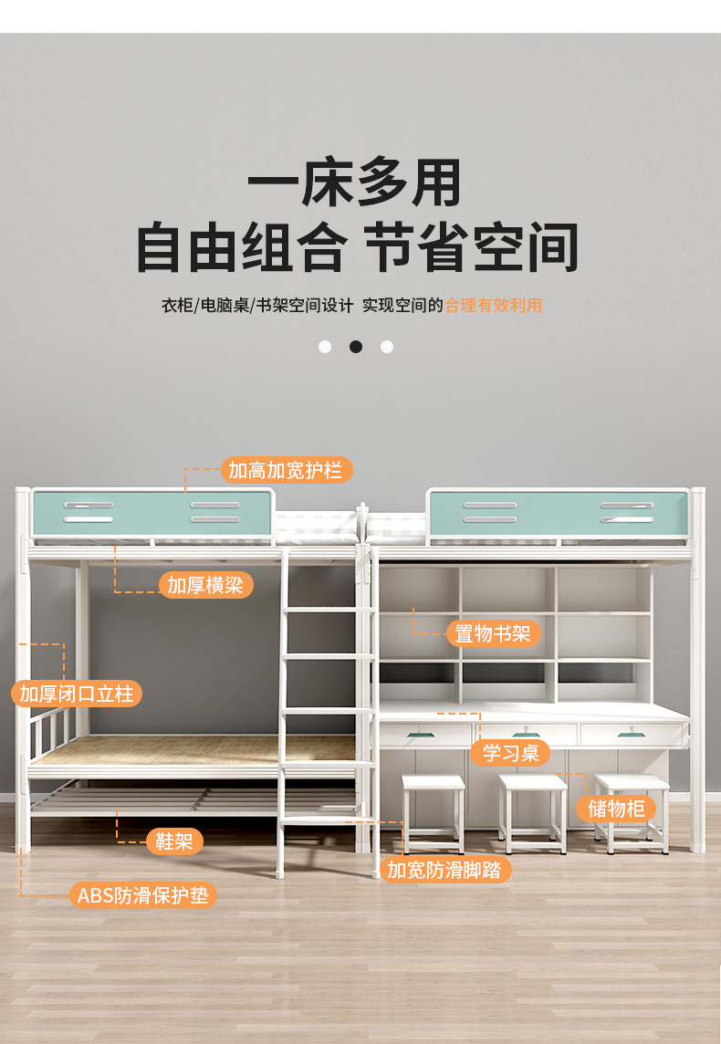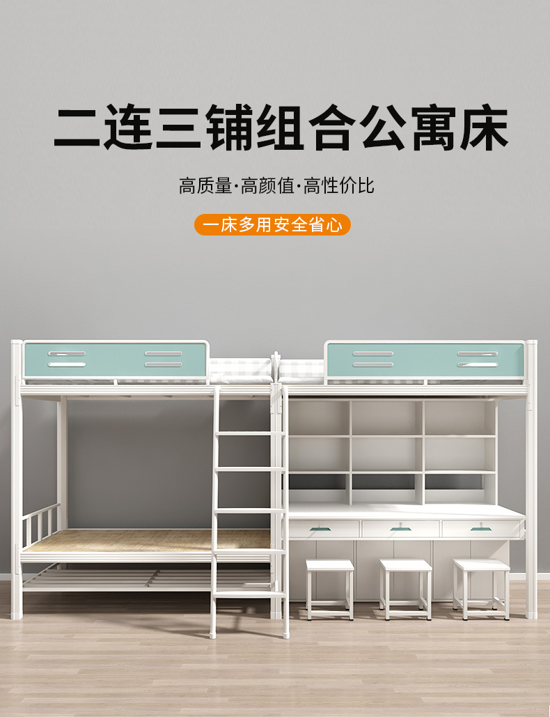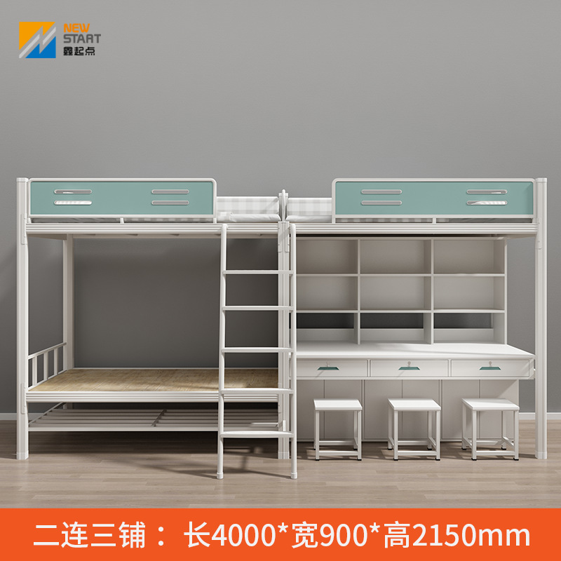 침대와 테이블이 결합된 일체형 아파트 침대, 학교 기숙사 이층 침대, 철제 금속 두꺼운 직원 철제 프레임 침대스토어 가기