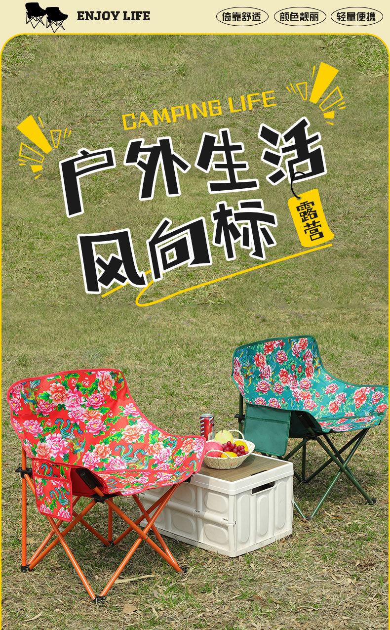 야외 접이식 의자 접이식 테이블 피크닉 캠핑 문체어 휴대용 중국풍 민족풍 동북풍 대형 꽃무늬