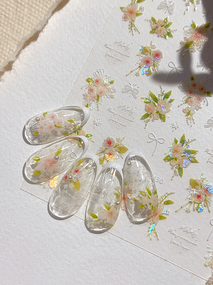 YITU 개미 그림 구호 꽃다발 네일 아트 스티커 절묘한 버스트 순수한 달콤한 귀여운 장식 스티커 YT5429스토어 가기