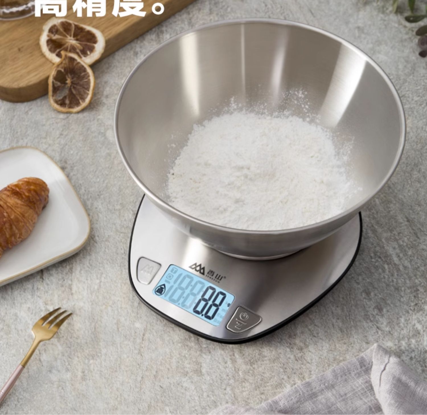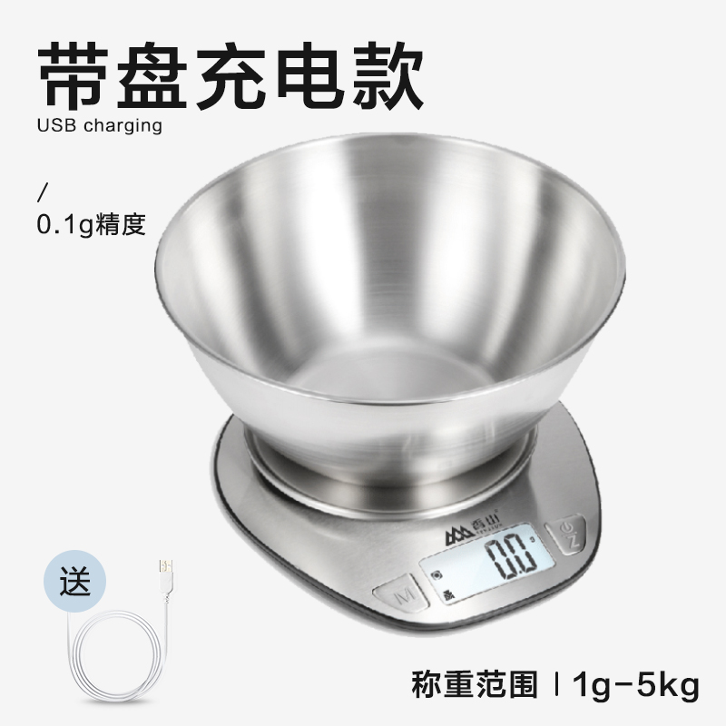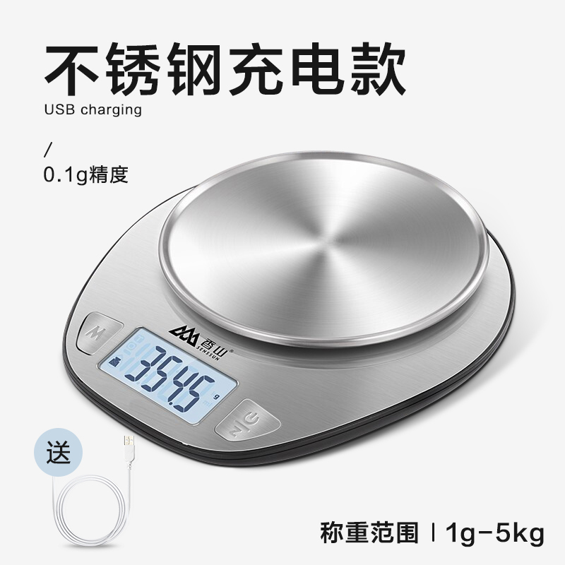 • 충전식 스테인리스 주방저울(접시 포함) [정확도 0.1g/5kg]