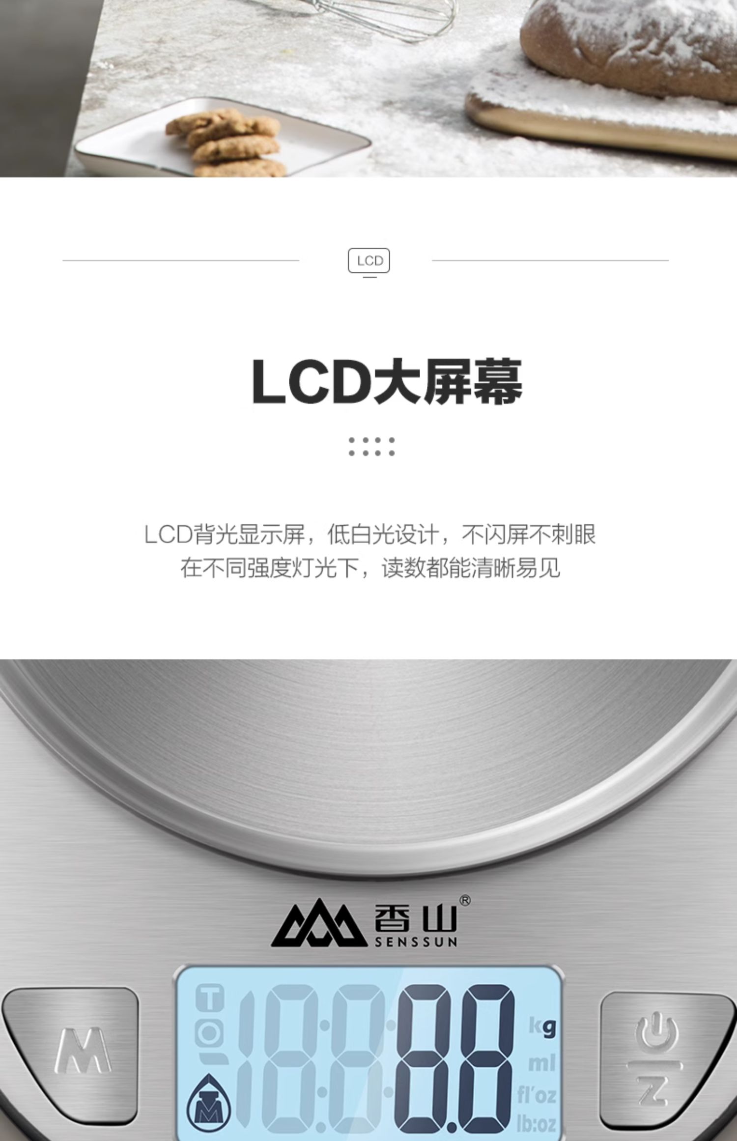• 충전식 스테인리스 주방저울 IPX6 방수 [0.1g 정확도/10kg]