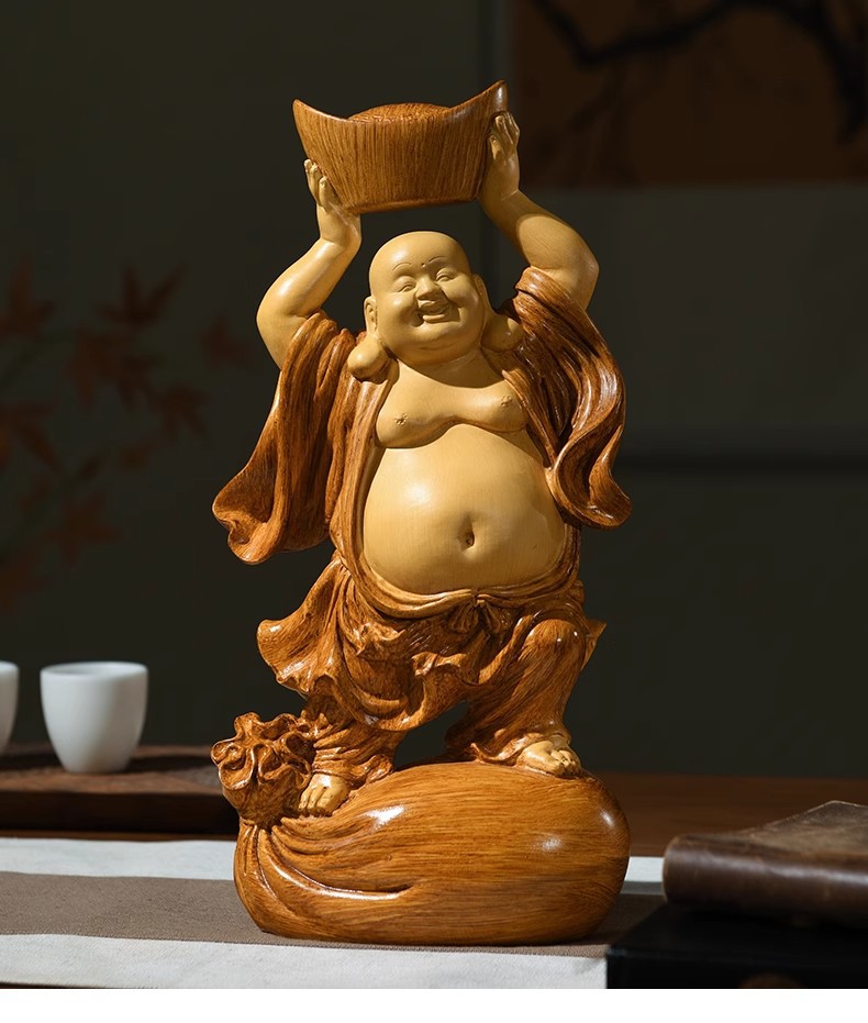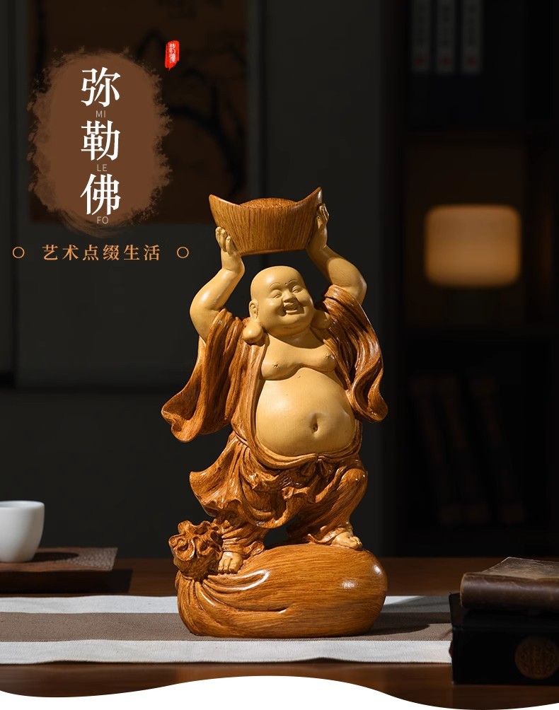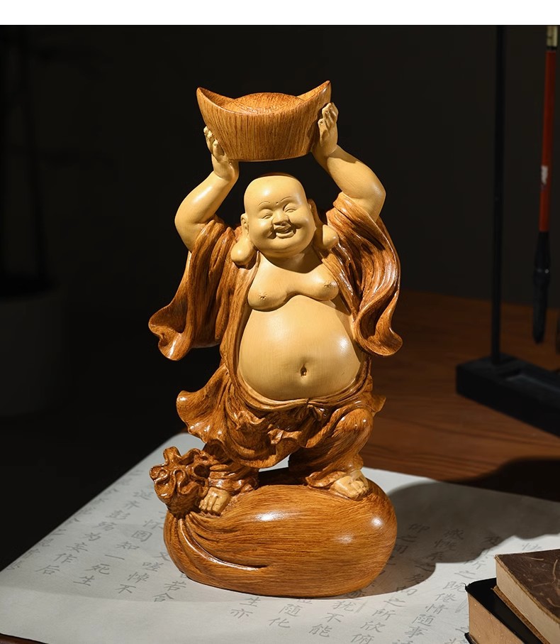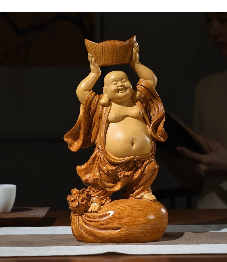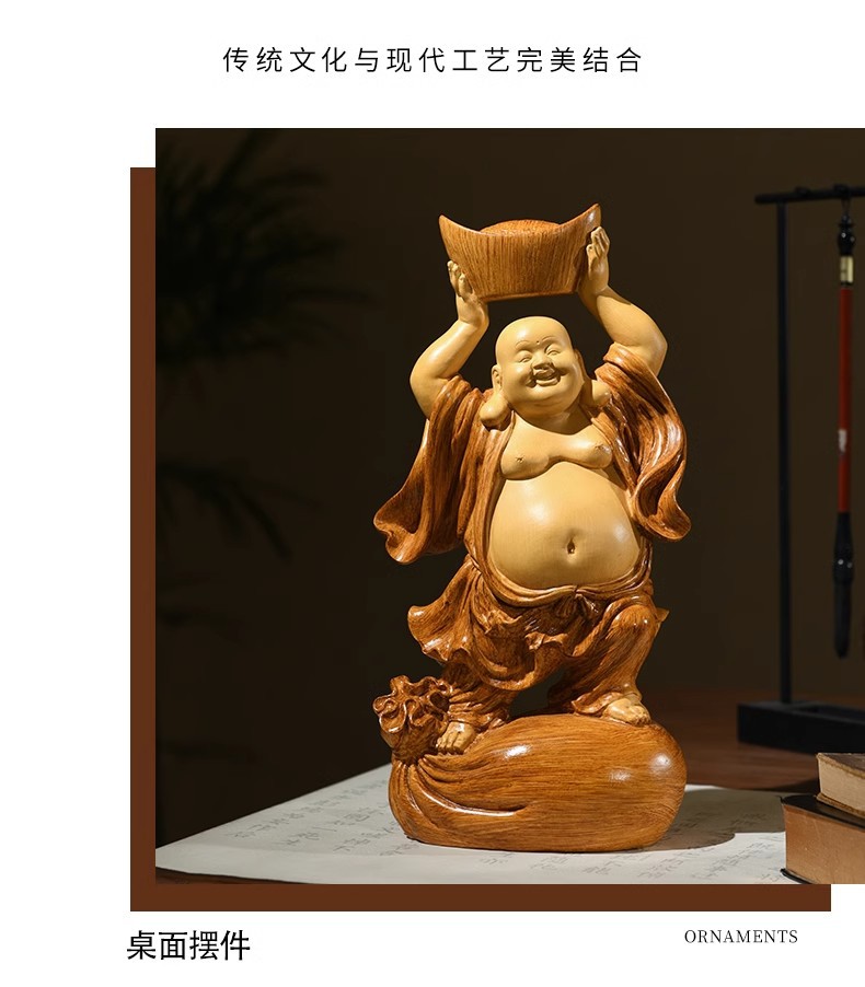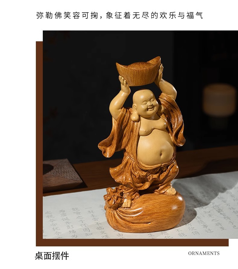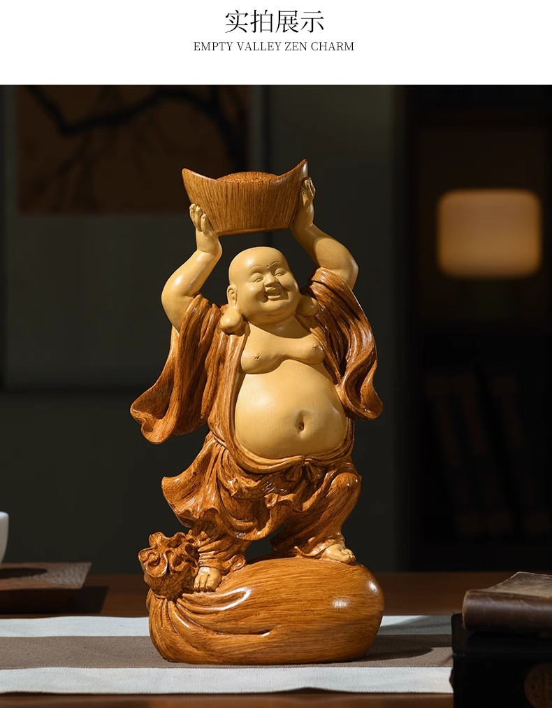 Yuanbao Maitreya Buddha 장식품 부처님 큰 배 웃음 부처님 모조 목상 공예 거실 다방 장식 오프닝 선물 제공
