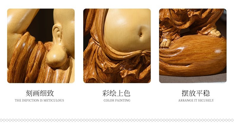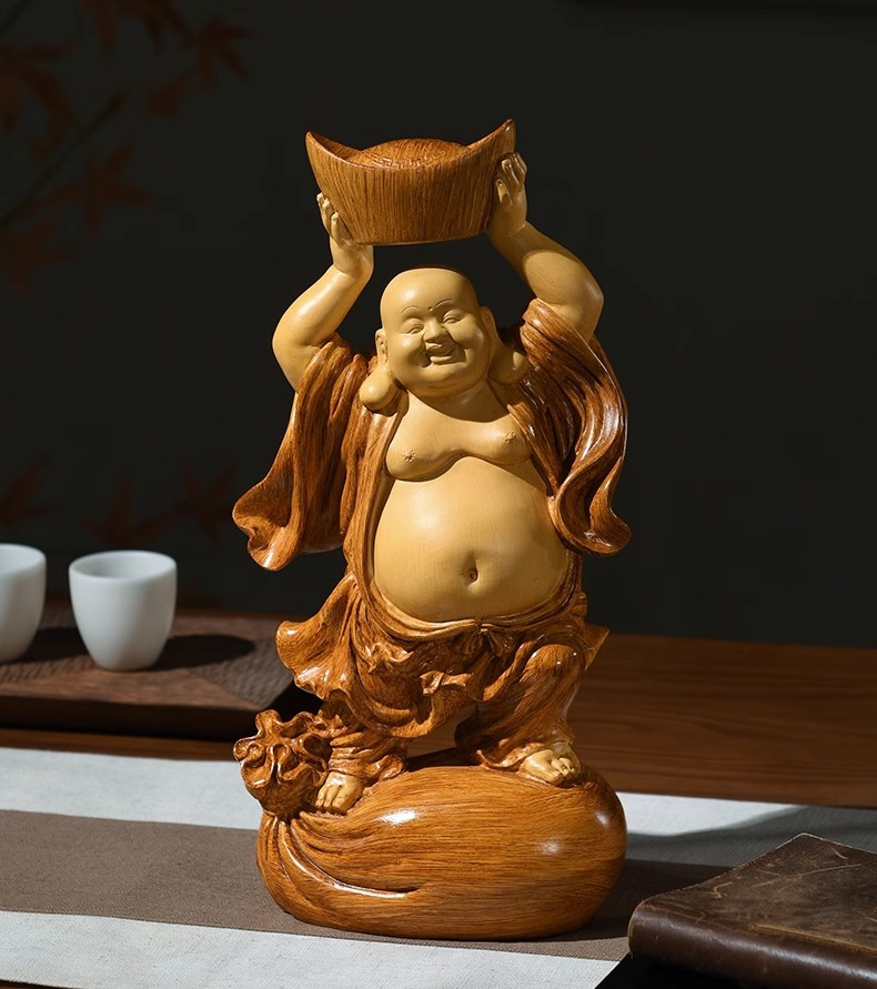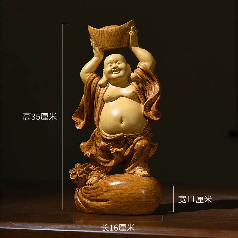 Yuanbao Maitreya Buddha 장식품 부처님 큰 배 웃음 부처님 모조 목상 공예 거실 다방 장식 오프닝 선물 제공스토어 가기