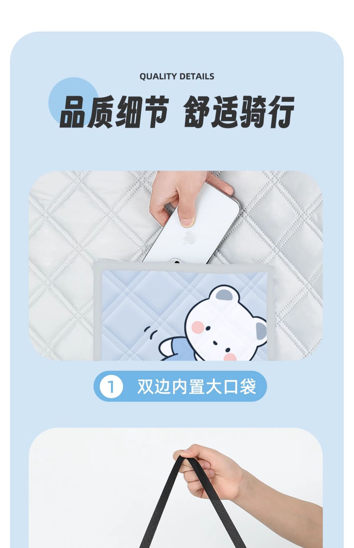 • [업그레이드된 어깨 패드 + 더블 포켓 + 수납 버클] 파란색 배경 별곰