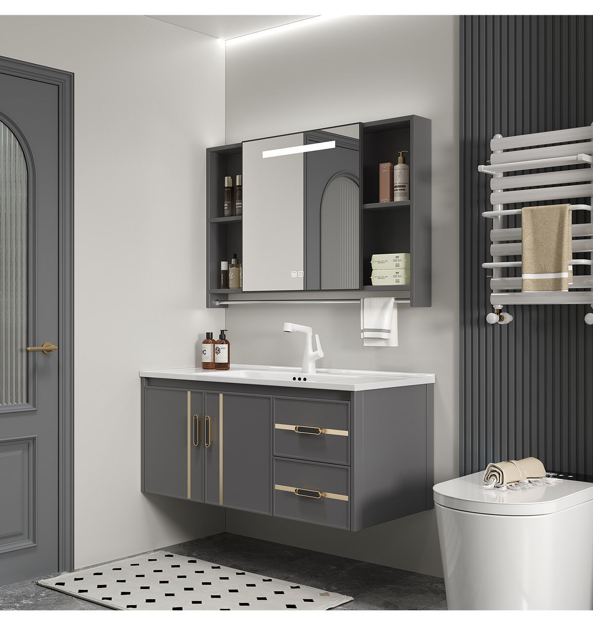 첸 주 공간 알루미늄 세면기 욕실 세라믹 통합 간단한 욕실 캐비닛 조합 세면기 캐비닛스토어 가기