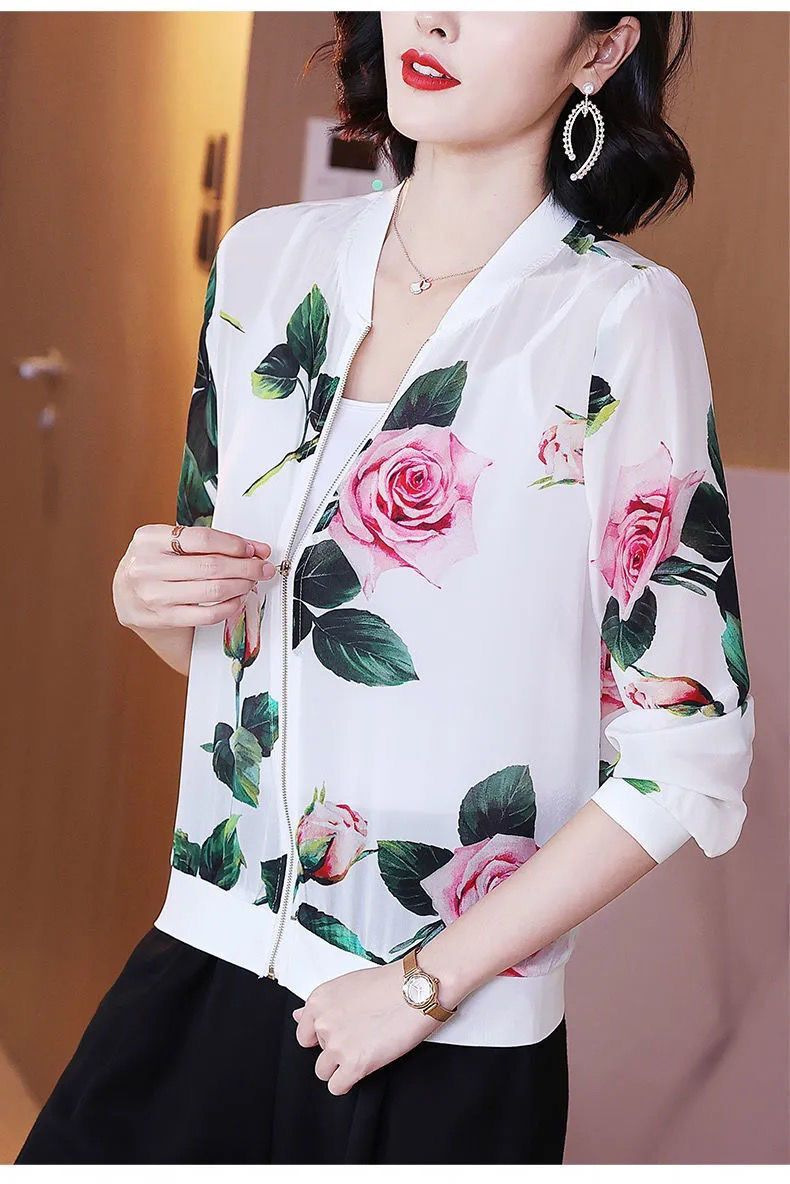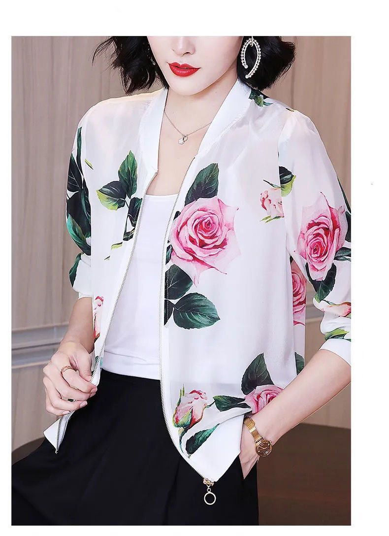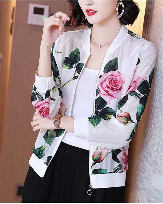 여성용 쉬폰 자외선 차단 의류, 여성용 패셔너블한 긴팔 얇은 코트, 여성용 봄 여름 신작 대형 프린트 가디건 탑, 여성용 야구 유니폼스토어 가기