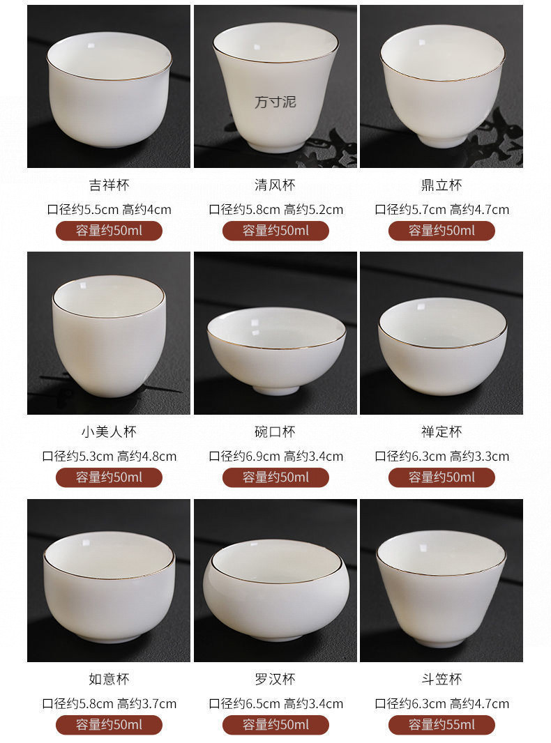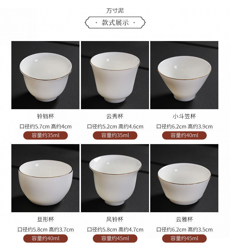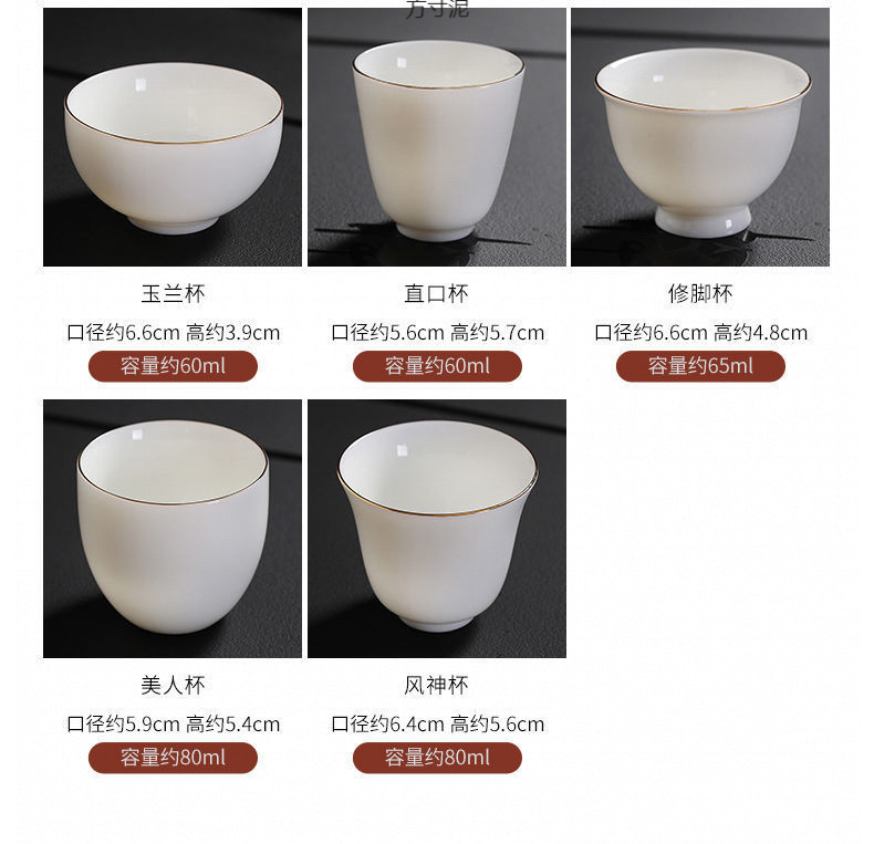 수트 옥 도자기 쿵푸 차 컵 화이트 도자기 차 컵 세라믹 수제 마스터 티 컵 가정용 작은 차 그릇 싱글 컵 도매스토어 가기