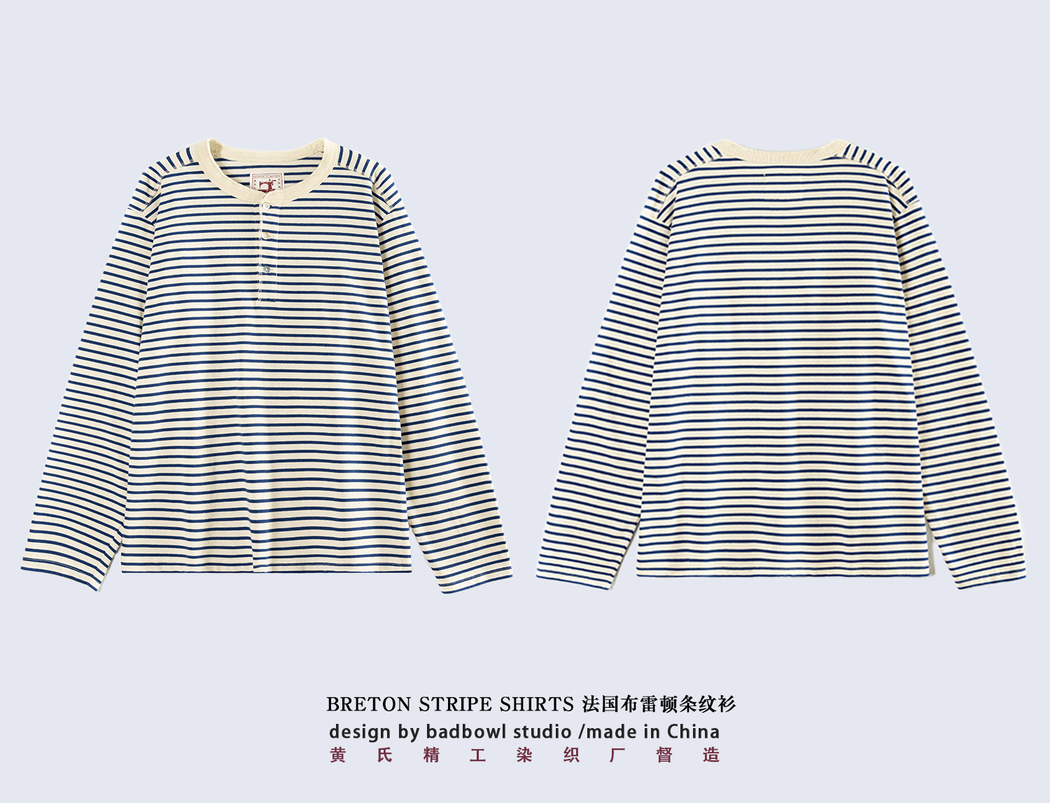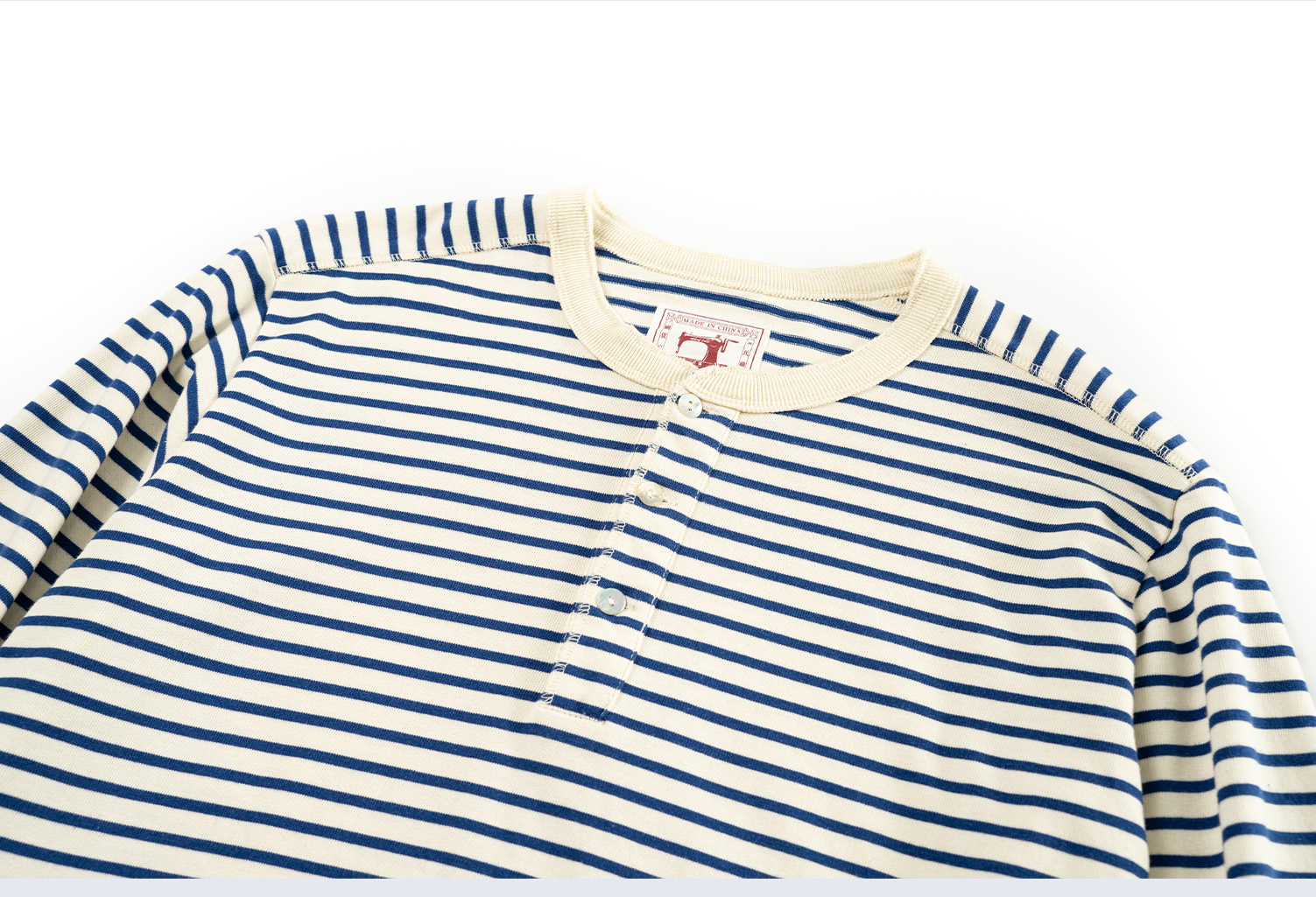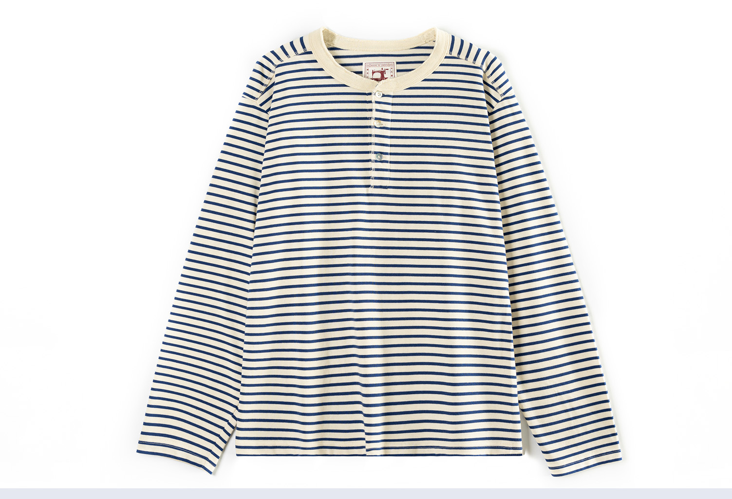 클래식 아메리칸 레트로 블루와 화이트 소울 셔츠 티셔츠 헤비 코튼 스트라이프 남성용 헨리 칼라 캐주얼 롱 슬리브 티셔츠스토어 가기