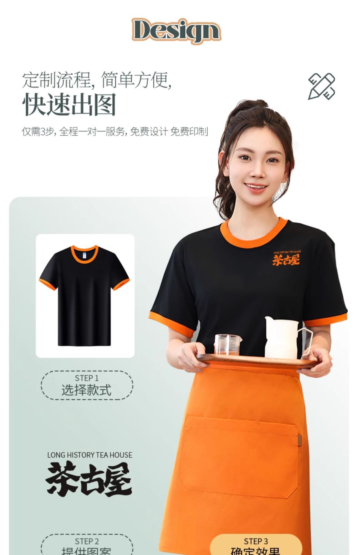 여름 케이터링 작업복 맞춤형 코튼 라운드 넥 짧은 소매 티셔츠 슈퍼마켓 냄비 가게 웨이터 툴링 로고