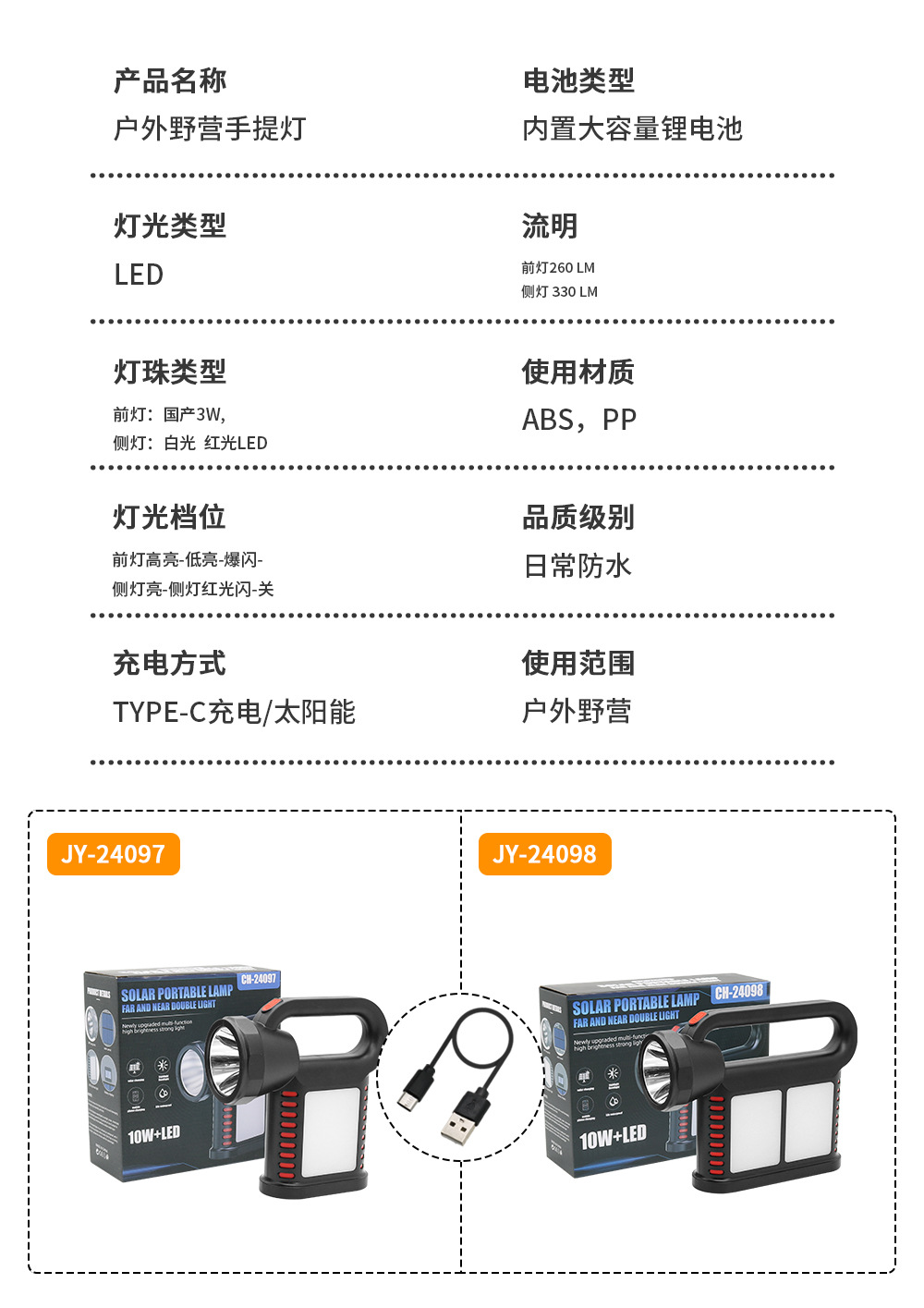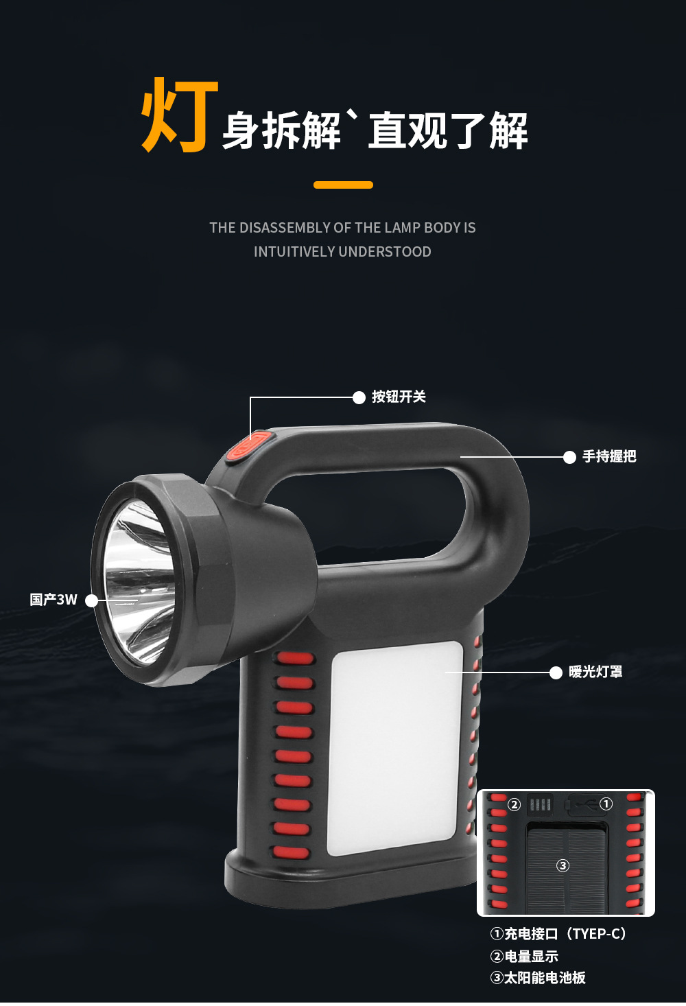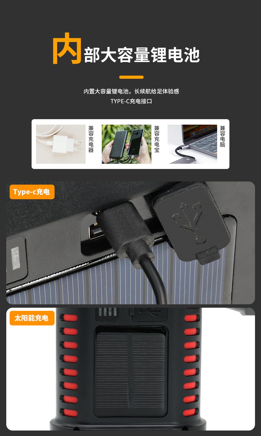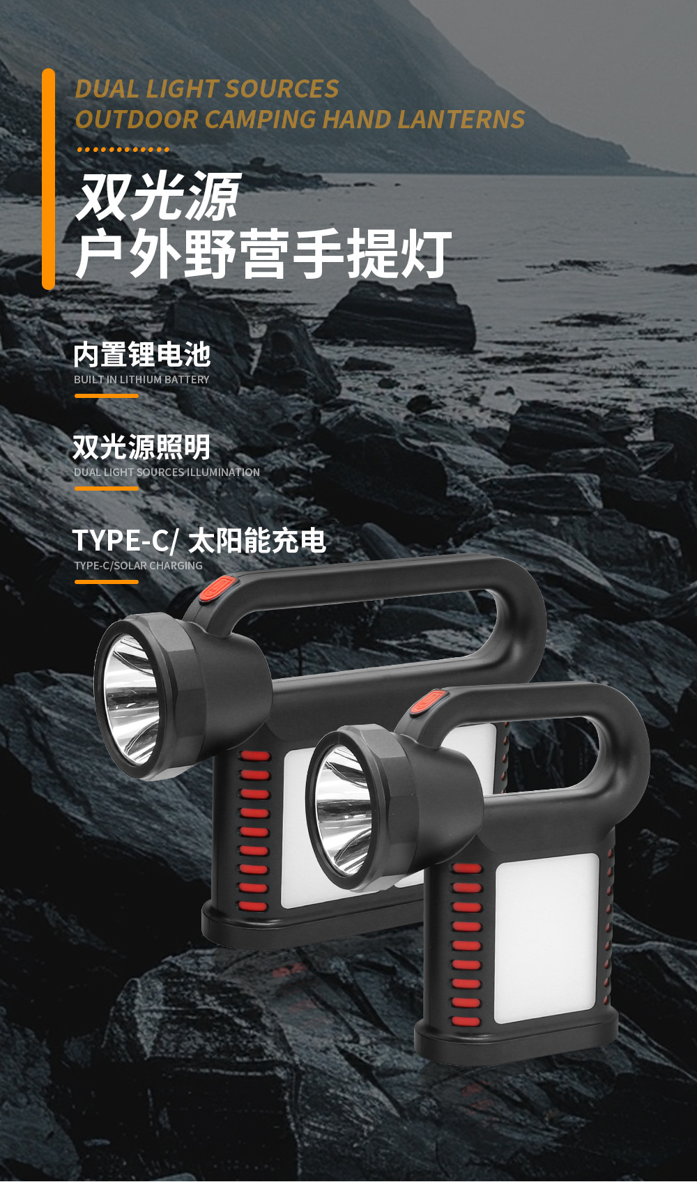 새로운 LED 태양 충전식 작업 램프 휴대용 손전등 다기능 야외 휴대용 램프