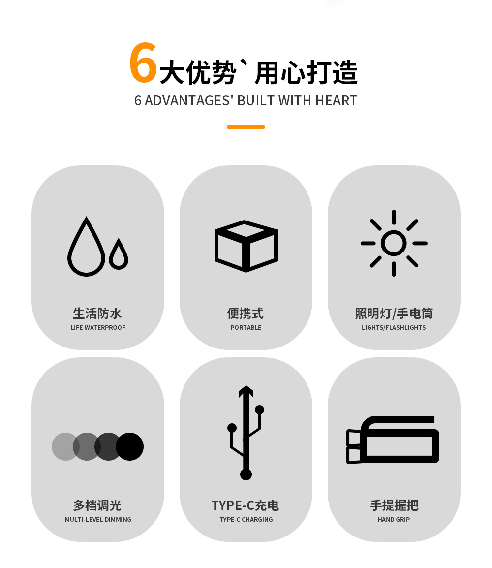 새로운 LED 태양 충전식 작업 램프 휴대용 손전등 다기능 야외 휴대용 램프스토어 가기