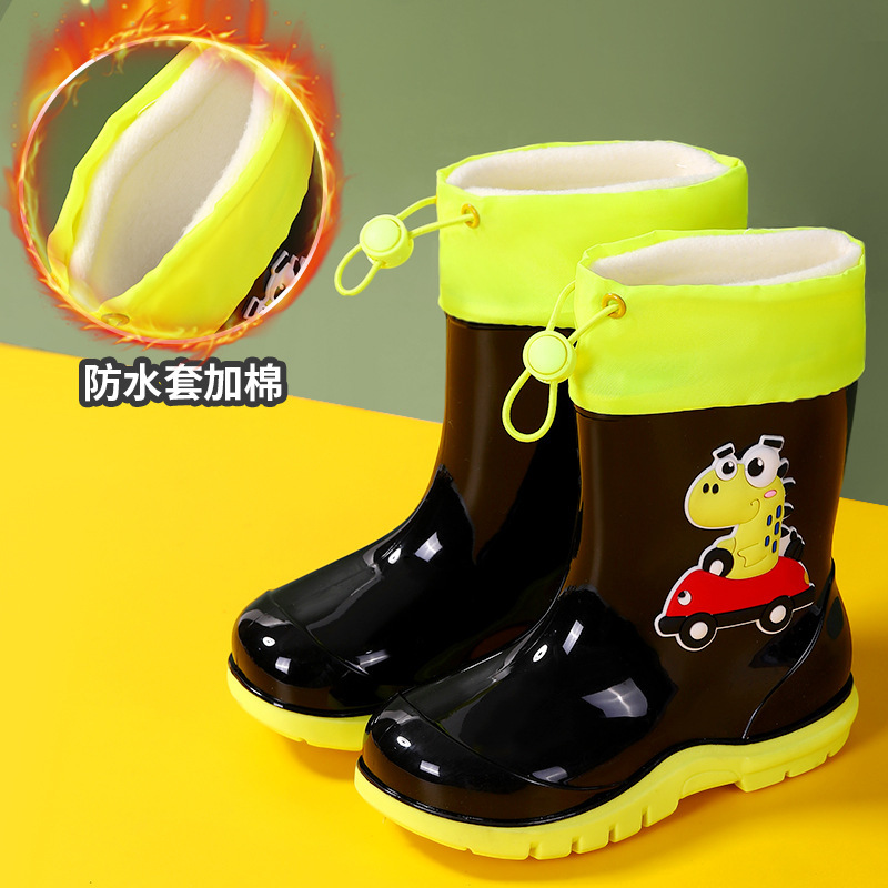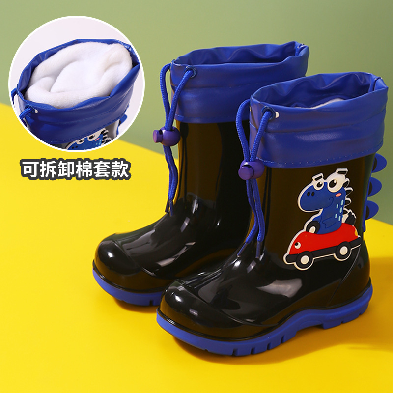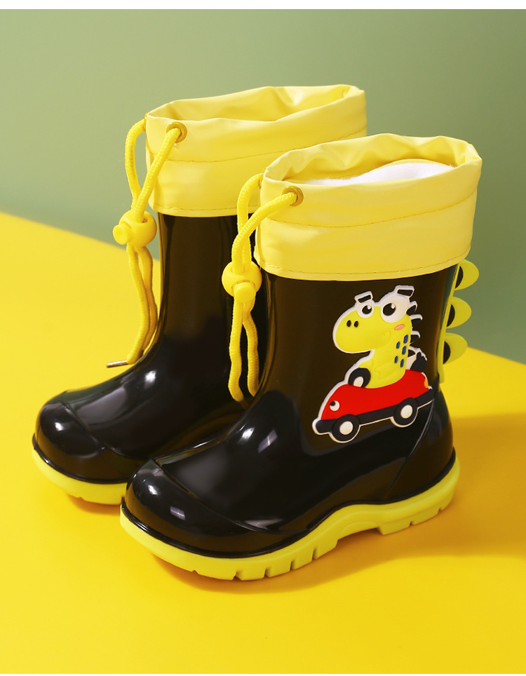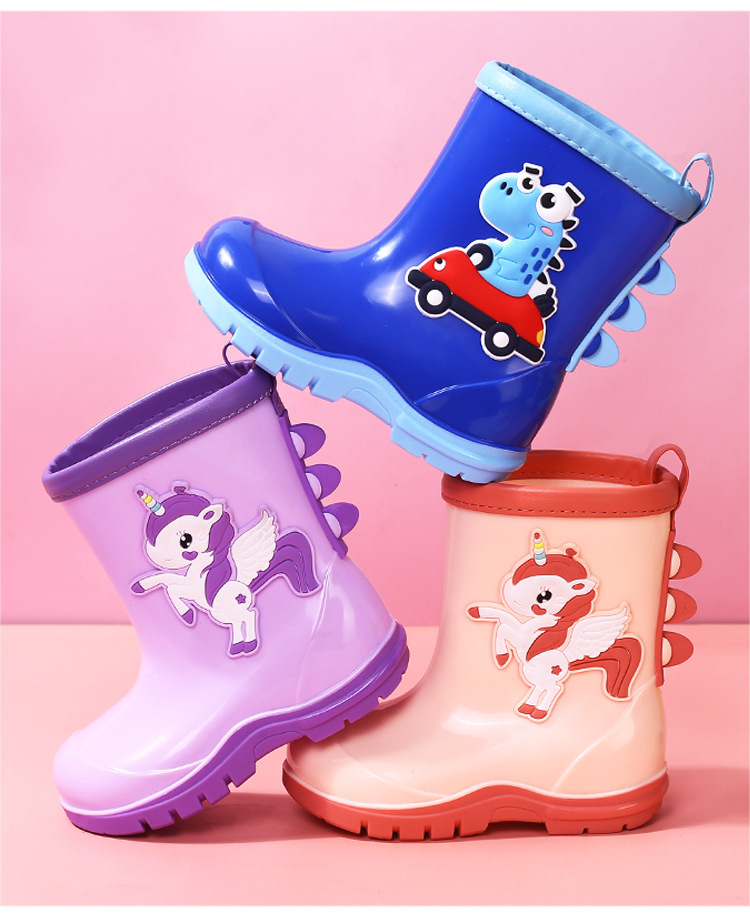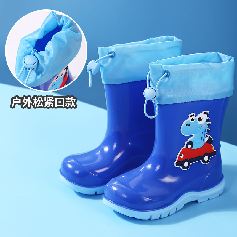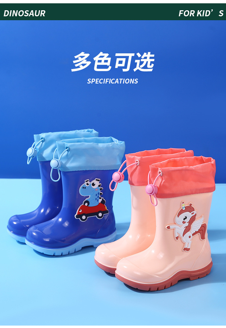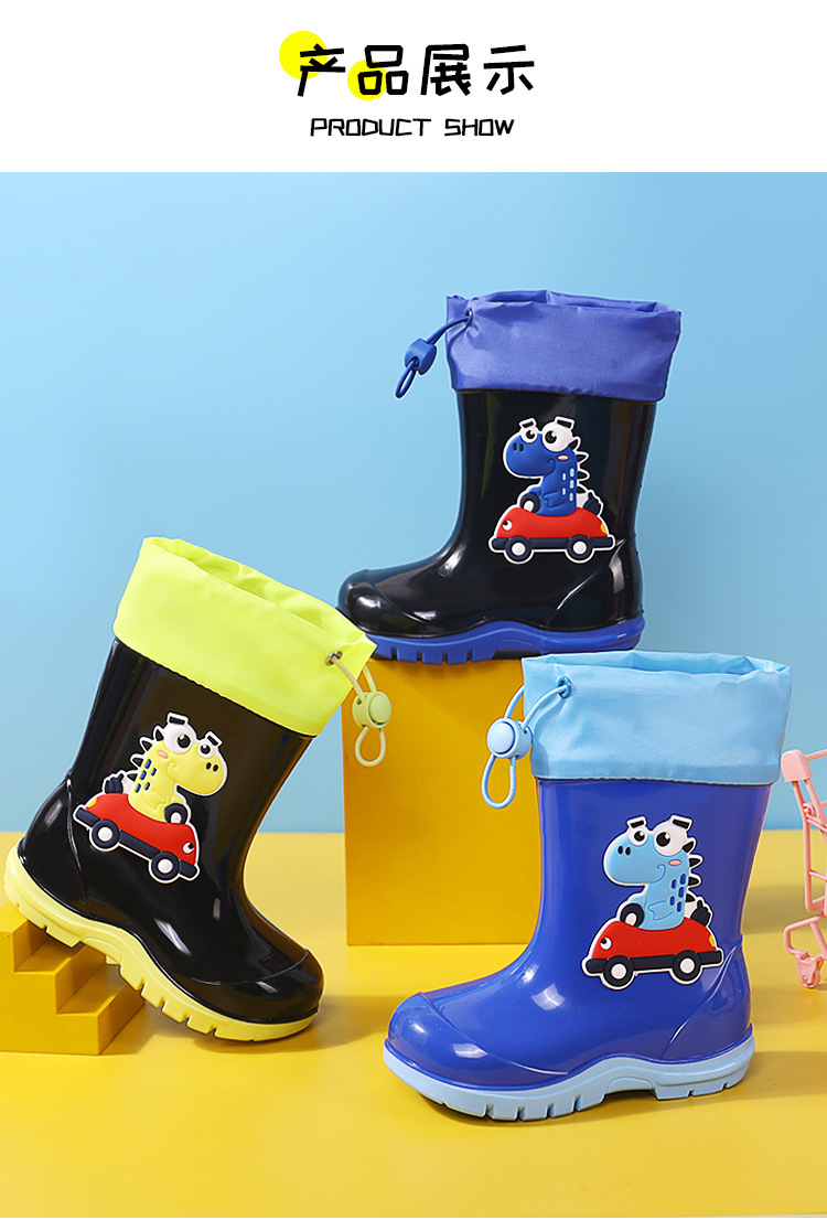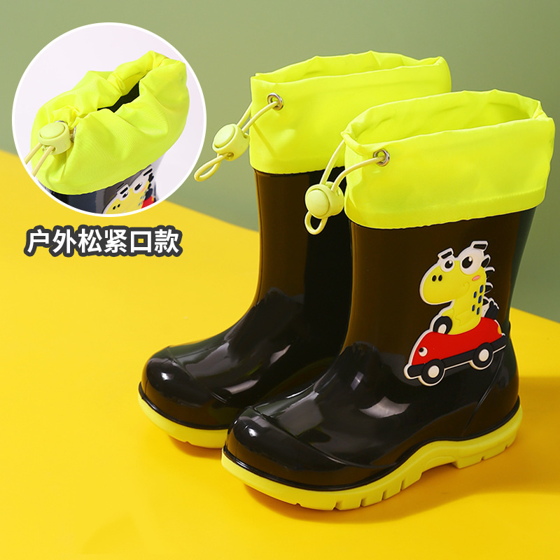 새로운 어린이 하이 부츠 공룡 만화 워터 부츠 미끄럼 방지 부드러운 바닥 방수 신발 소년과 소녀 초등학교 고무 신발
