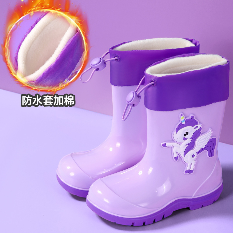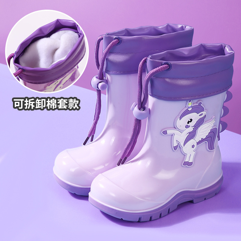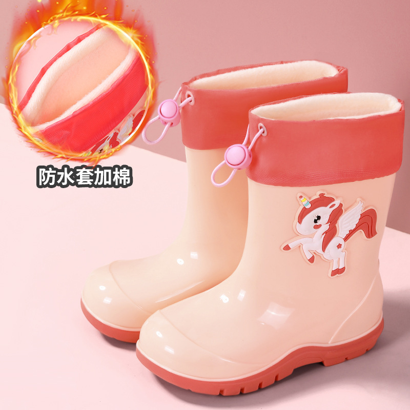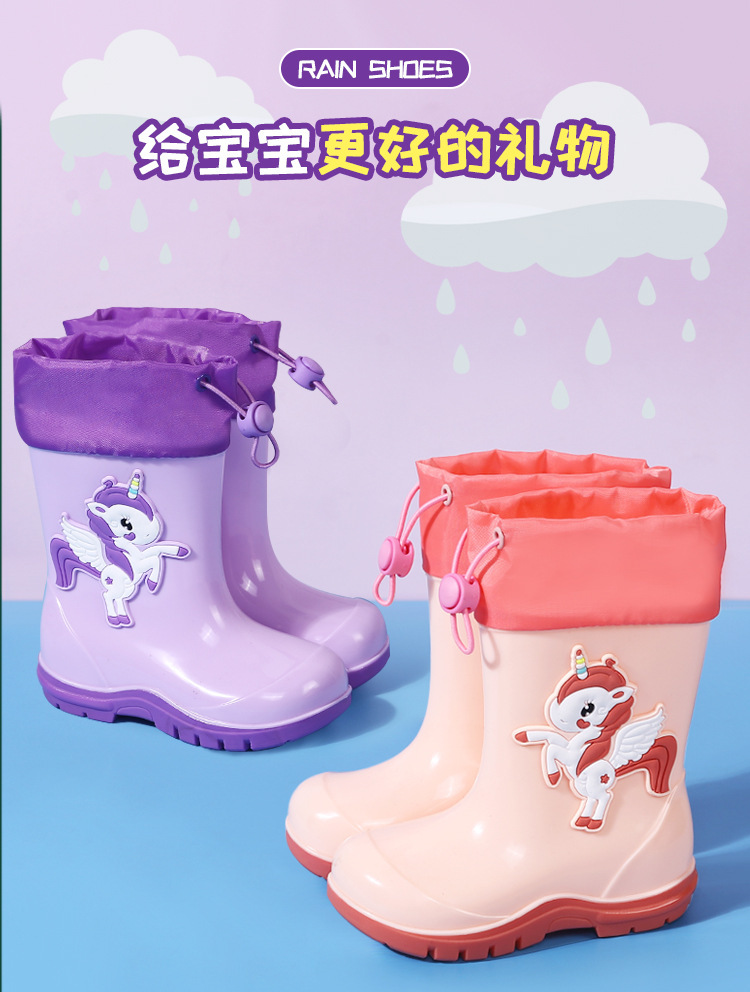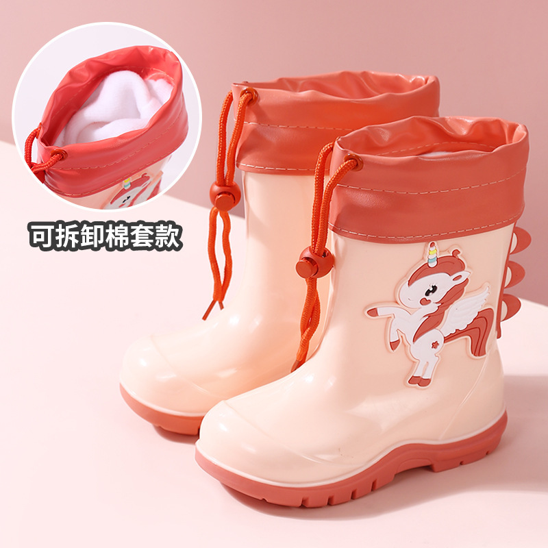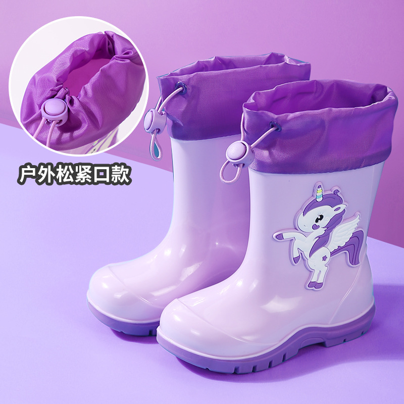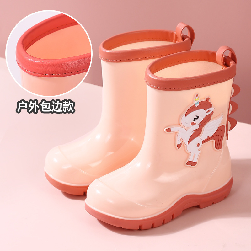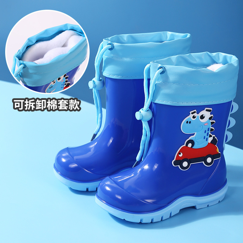 새로운 어린이 하이 부츠 공룡 만화 워터 부츠 미끄럼 방지 부드러운 바닥 방수 신발 소년과 소녀 초등학교 고무 신발
