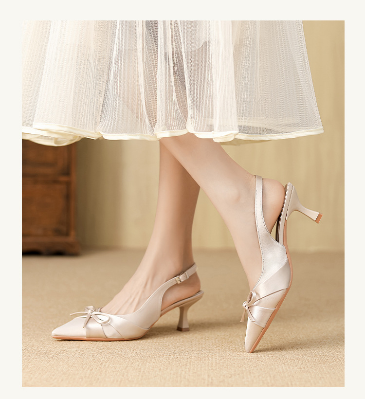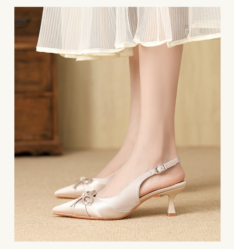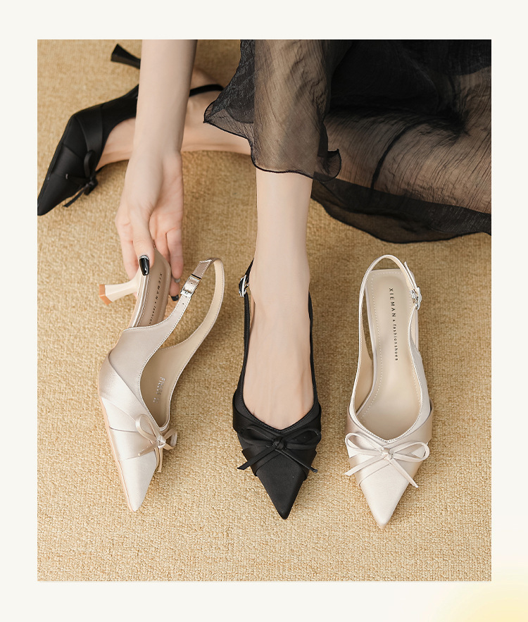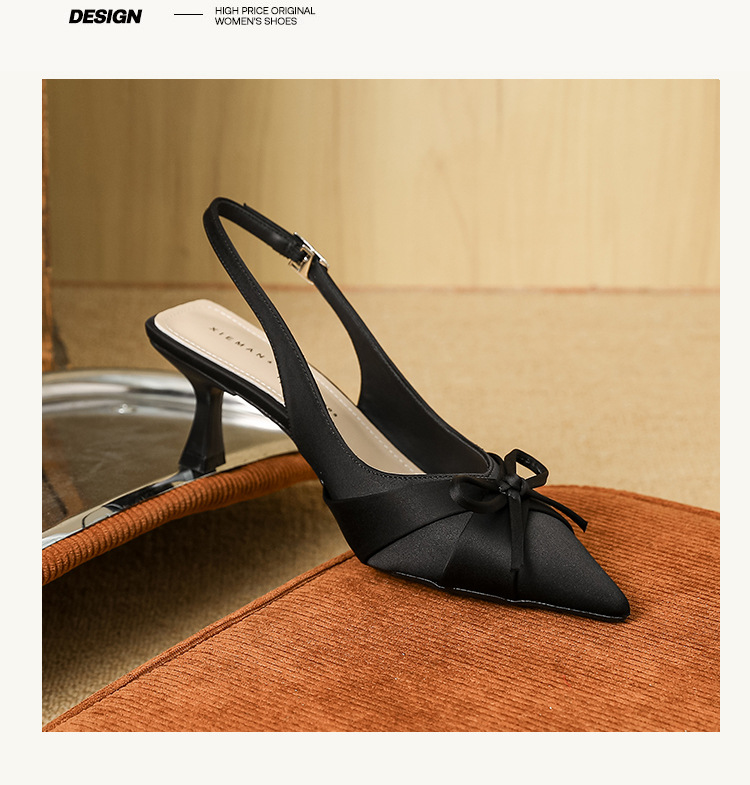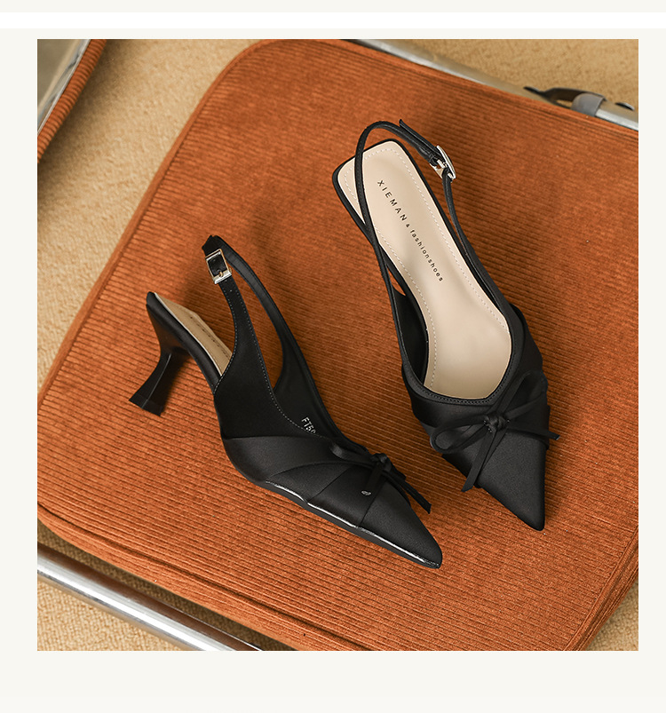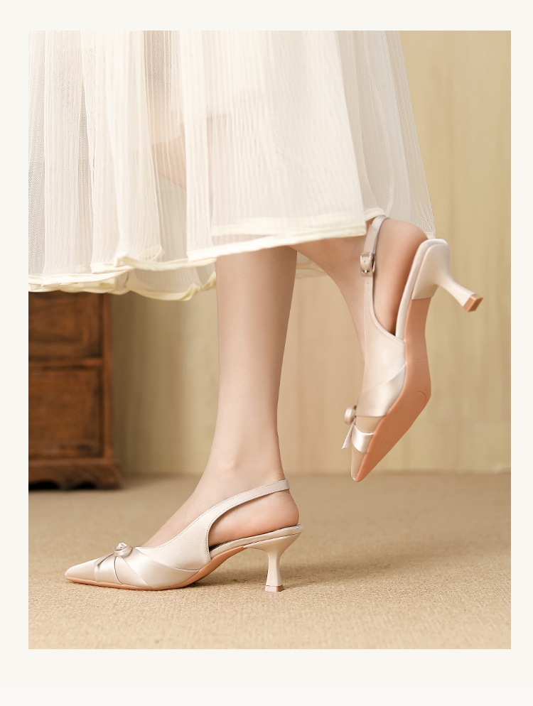 6631 패션 새로운 이른 봄 틈새 하이힐 실크 새틴 백 포인트 샌들 페어리 스타일 원피스 여성 신발스토어 가기