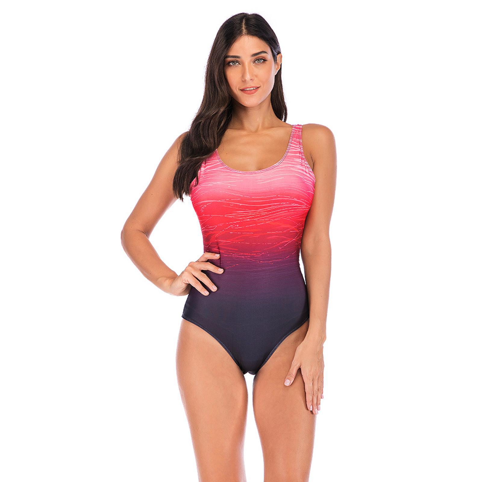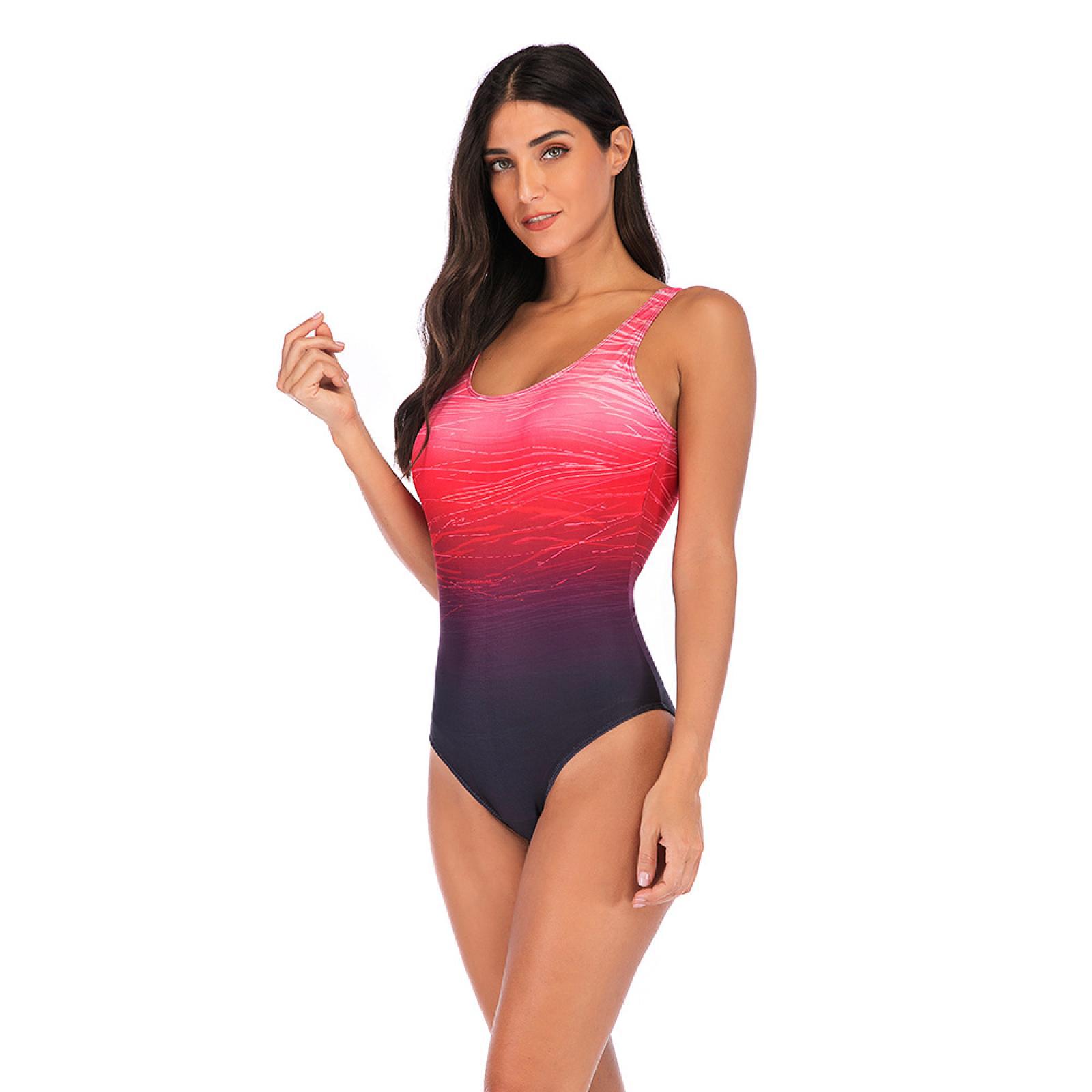 국경 간 플러스 사이즈 수영복 섹시한 그라데이션 백리스 원피스 수영복 여성 프린트 해변 휴가 대외 무역 수영복 비키니스토어 가기