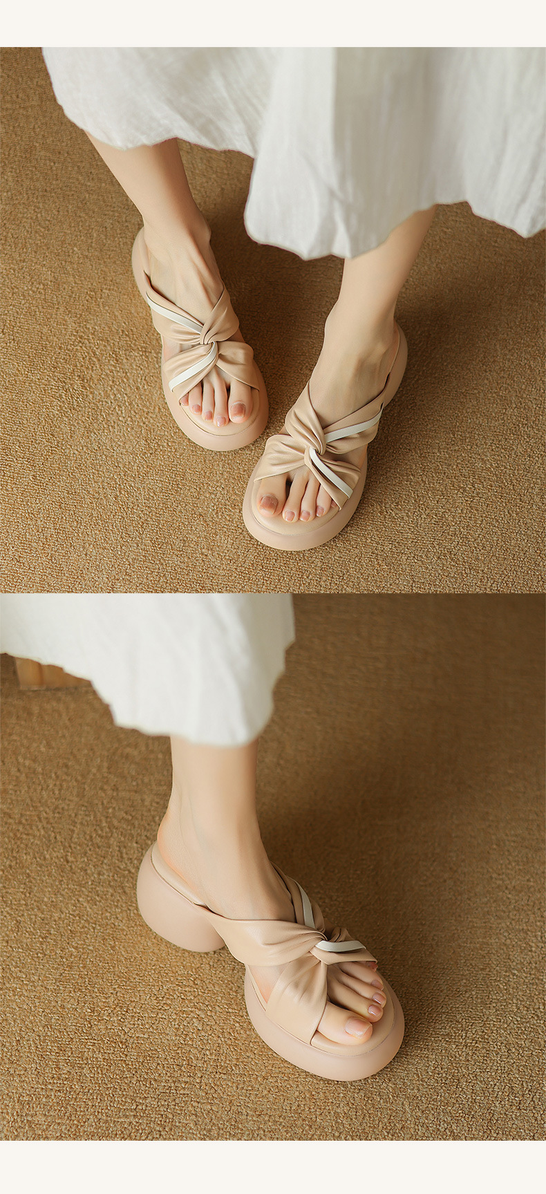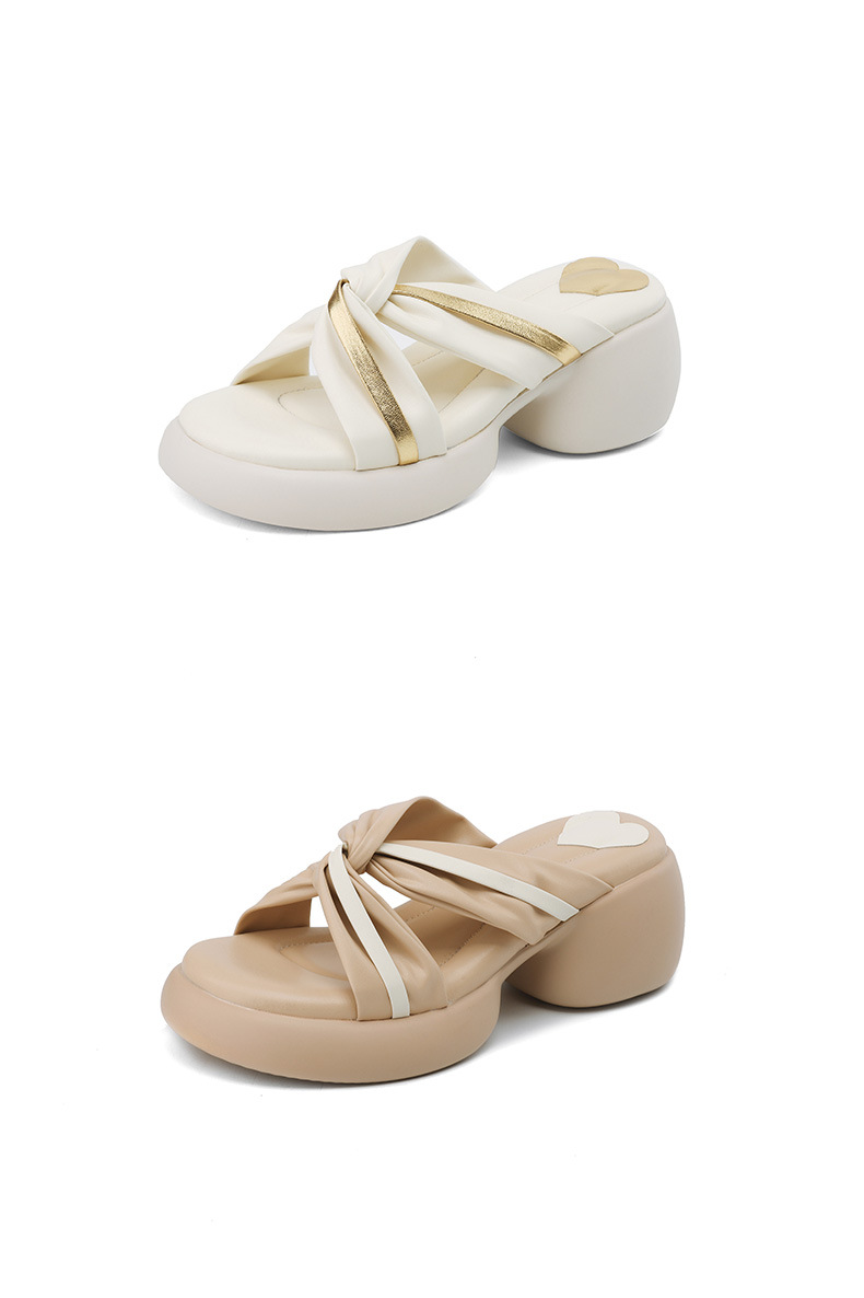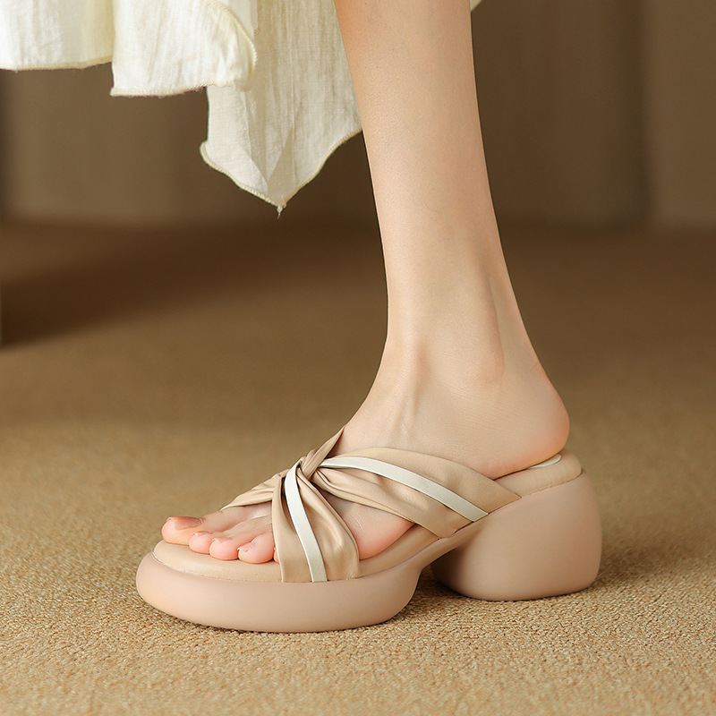 배설물 모양의 두꺼운 밑창 샌들과 슬리퍼 여성 여름 착용 유행 하이 엔드 소프트 밑창 크로스 스트랩 스커트가 달린 오픈 발가락 슬리퍼
