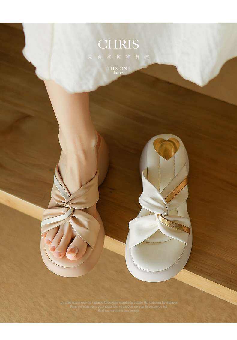 배설물 모양의 두꺼운 밑창 샌들과 슬리퍼 여성 여름 착용 유행 하이 엔드 소프트 밑창 크로스 스트랩 스커트가 달린 오픈 발가락 슬리퍼스토어 가기