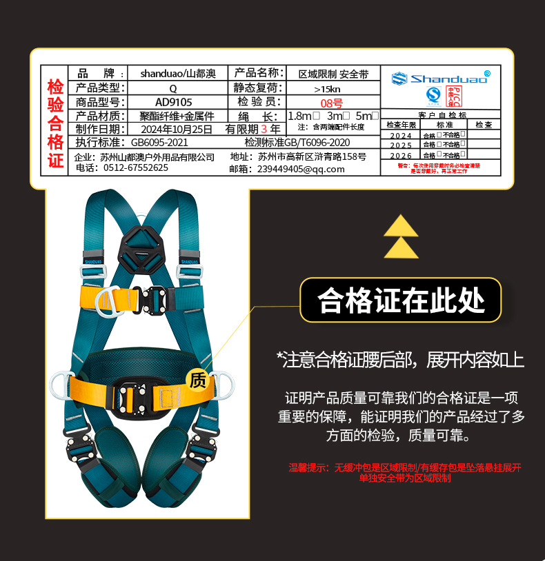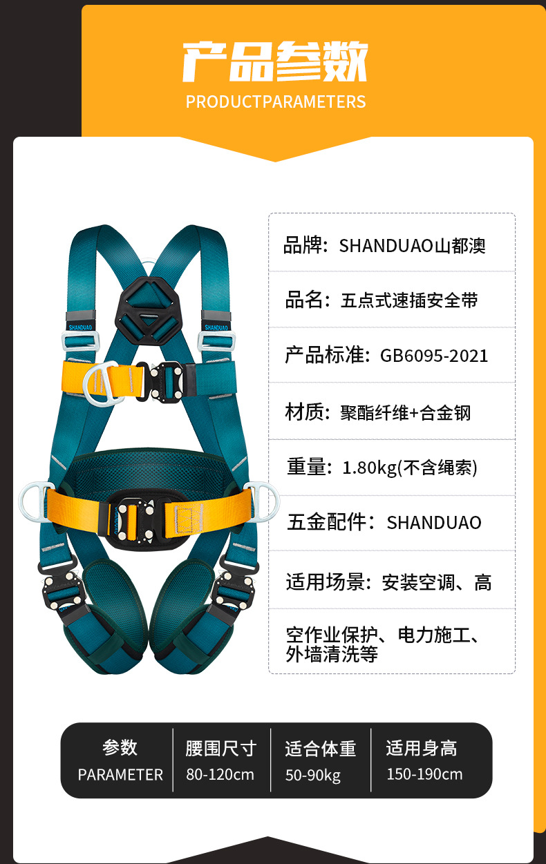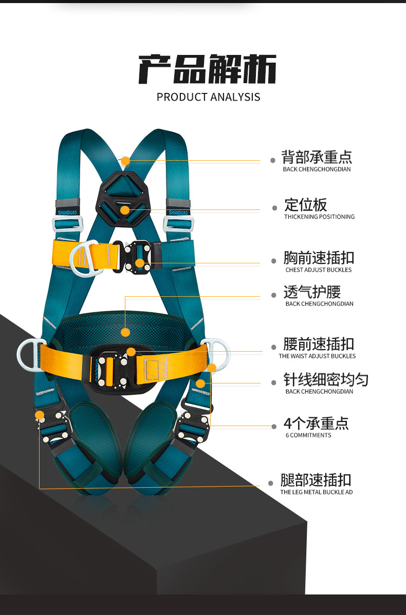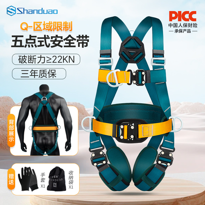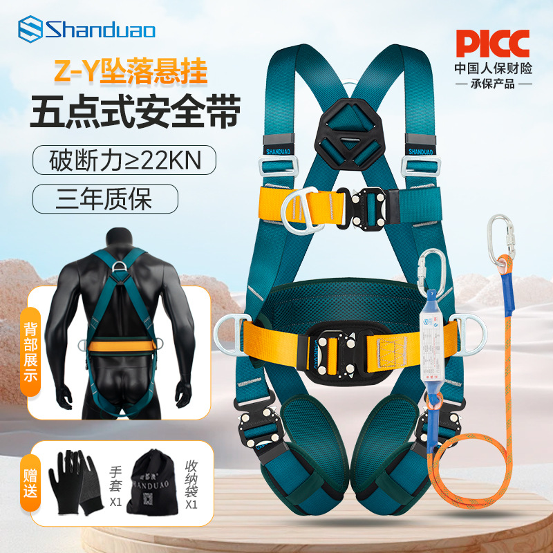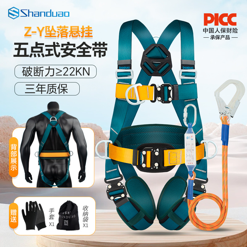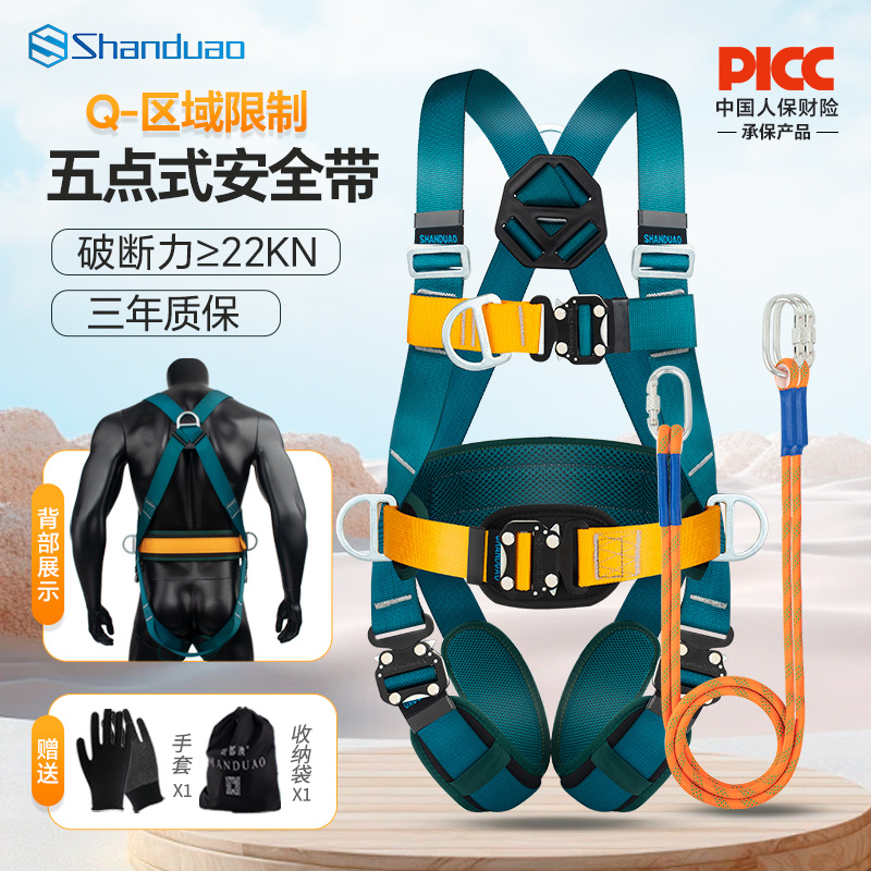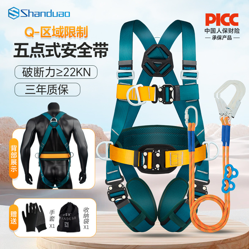 Shanduao 5점식 안전벨트 전신 고속 플러그인 고공 작업 안전 로프 세트(후크 포함) 국가 표준스토어 가기