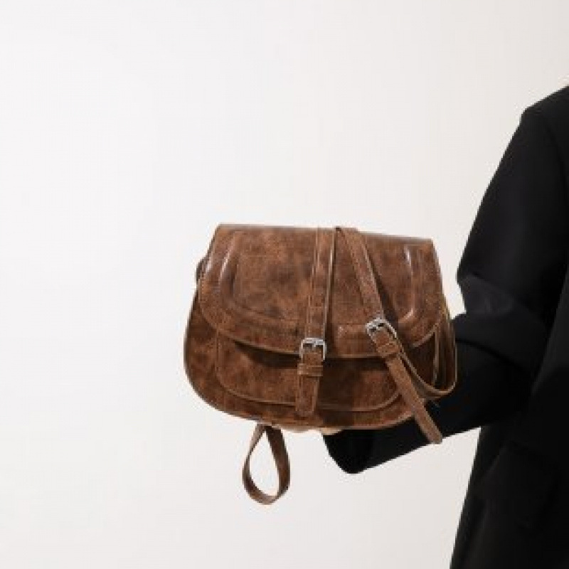 홍콩 스타일 복고풍 안장 가방 여성용 어깨 크로스 바디 백 유럽과 미국의 다용도 여성용 반원형 가방