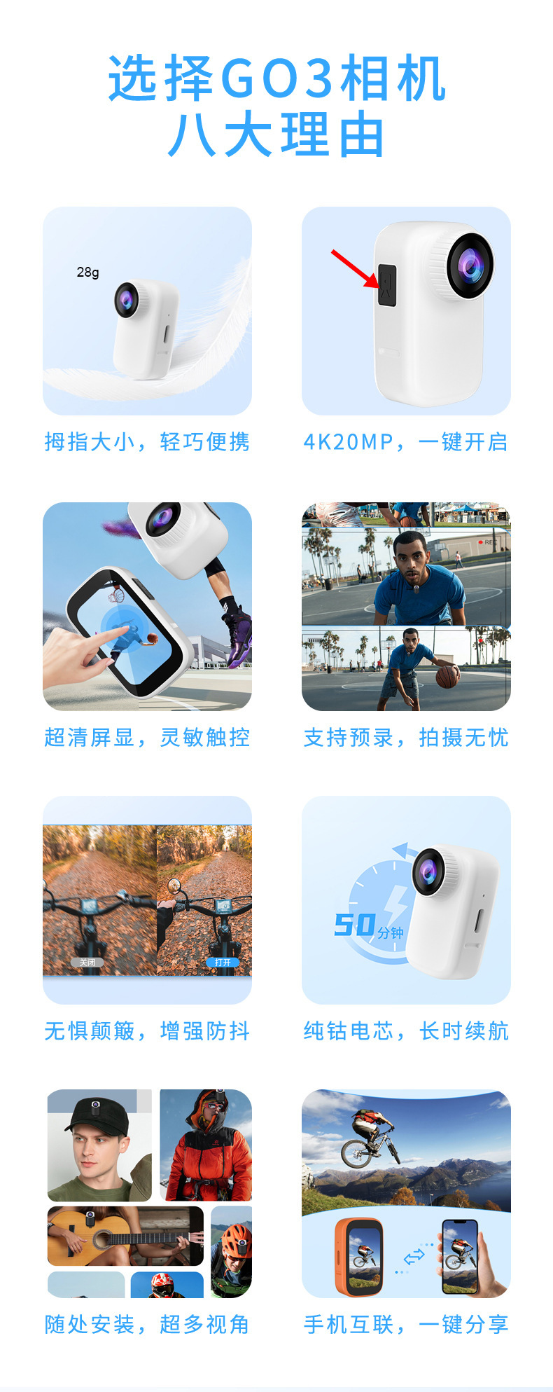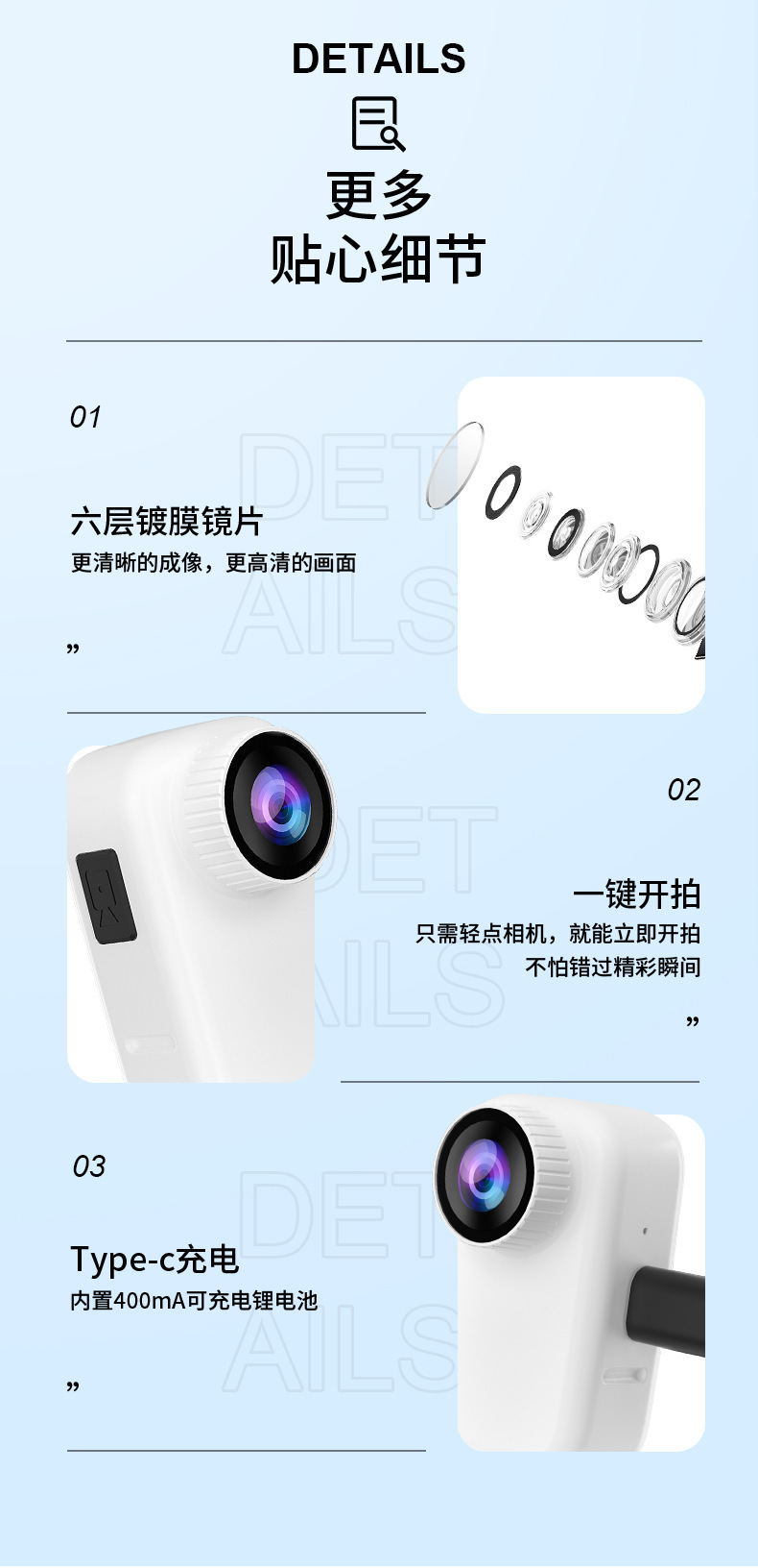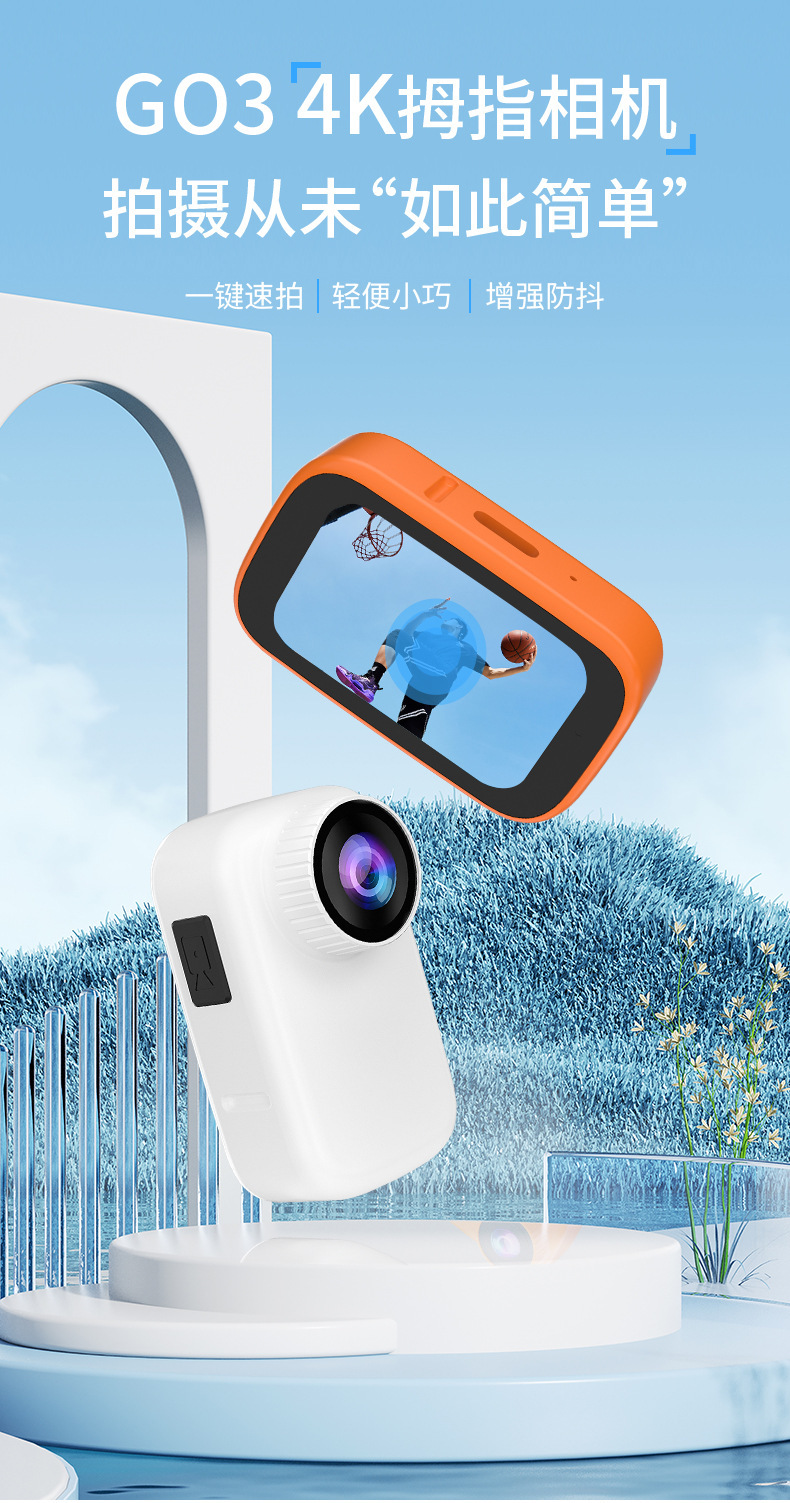 Vlog 레코더 와이드 앵글 파노라마 4K 작은 학생 어린이 카메라 와이파이 원격 제어 GO3 애완 동물 엄지 카메라