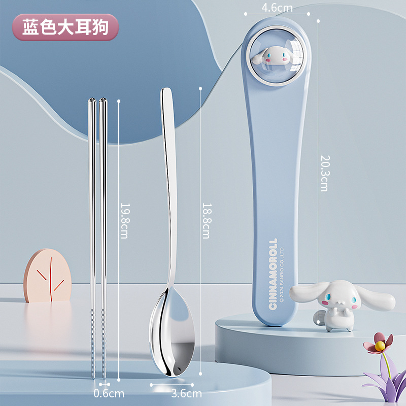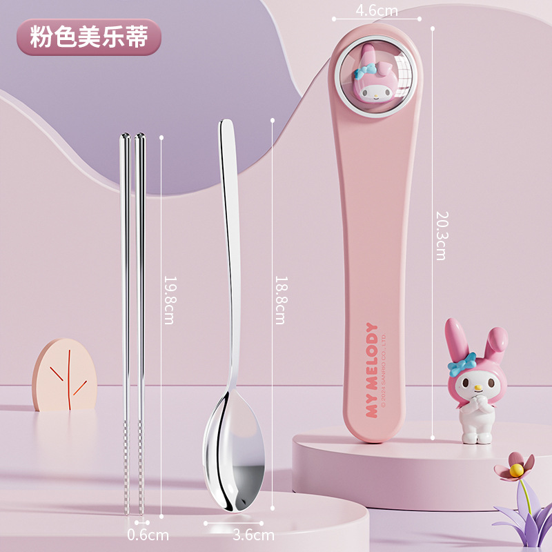 304 스테인레스 스틸 산리오 휴대용 숟가락과 젓가락 정품 쿠로미 숟가락과 젓가락 세트 학생 멜로디 휴대용 식기