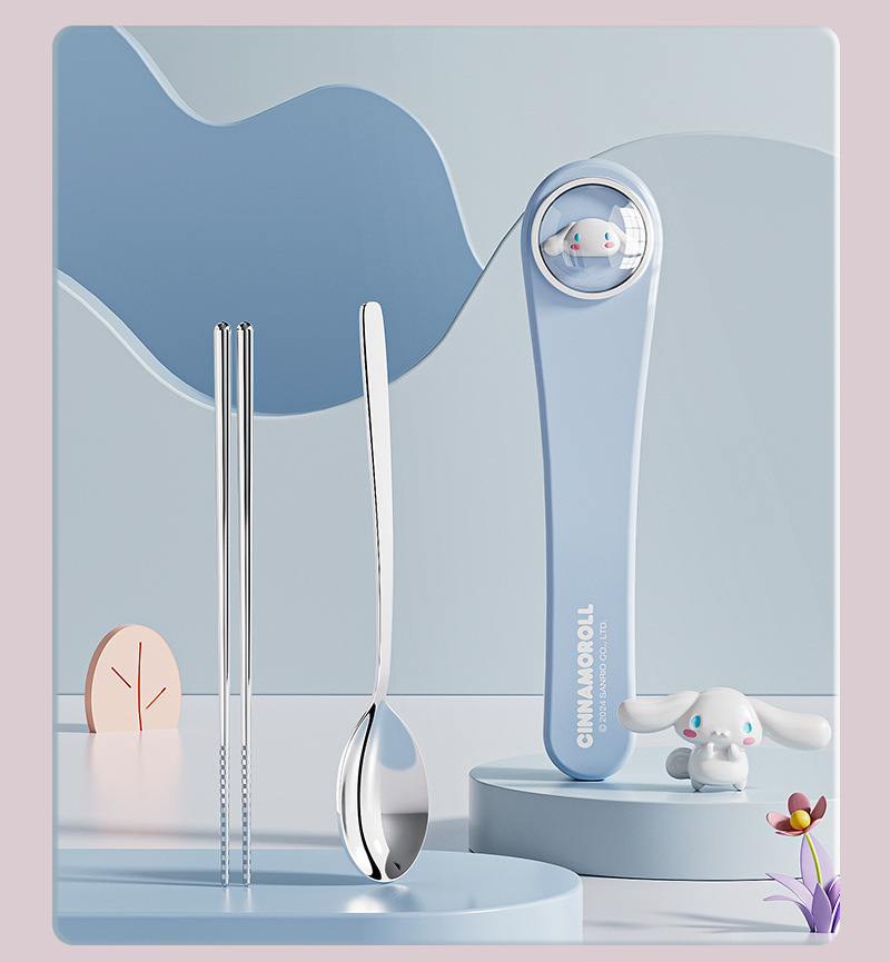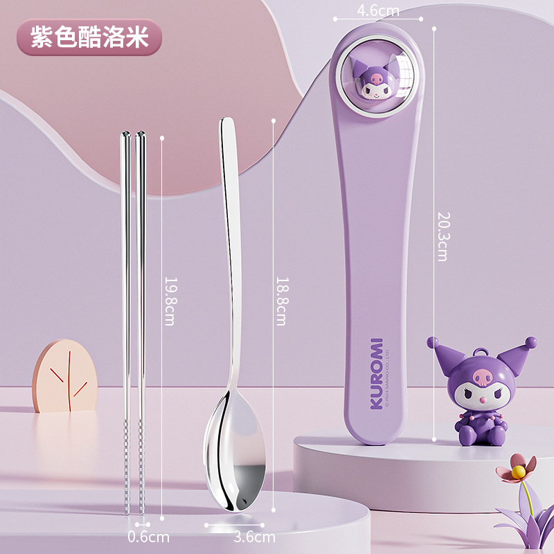 304 스테인레스 스틸 산리오 휴대용 숟가락과 젓가락 정품 쿠로미 숟가락과 젓가락 세트 학생 멜로디 휴대용 식기스토어 가기