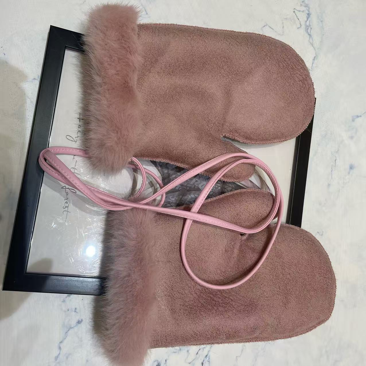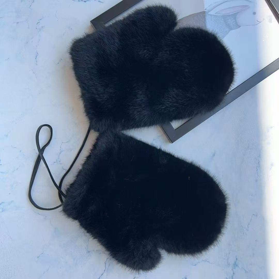 두꺼운 모피 신상품 겨울용 모조 밍크 모피 따뜻한 장갑 남녀공용 목걸이형 털 스키 및 자전거 장갑
