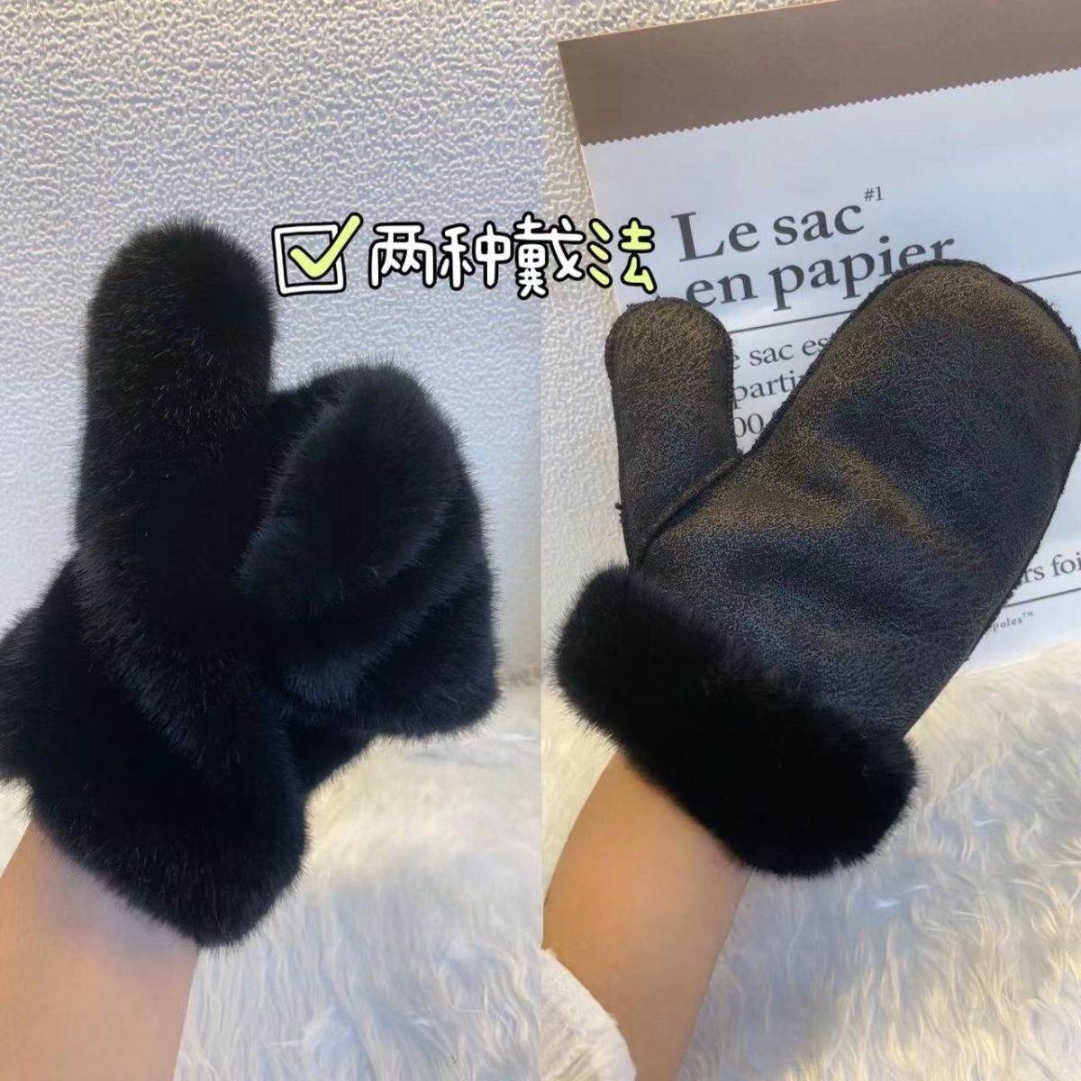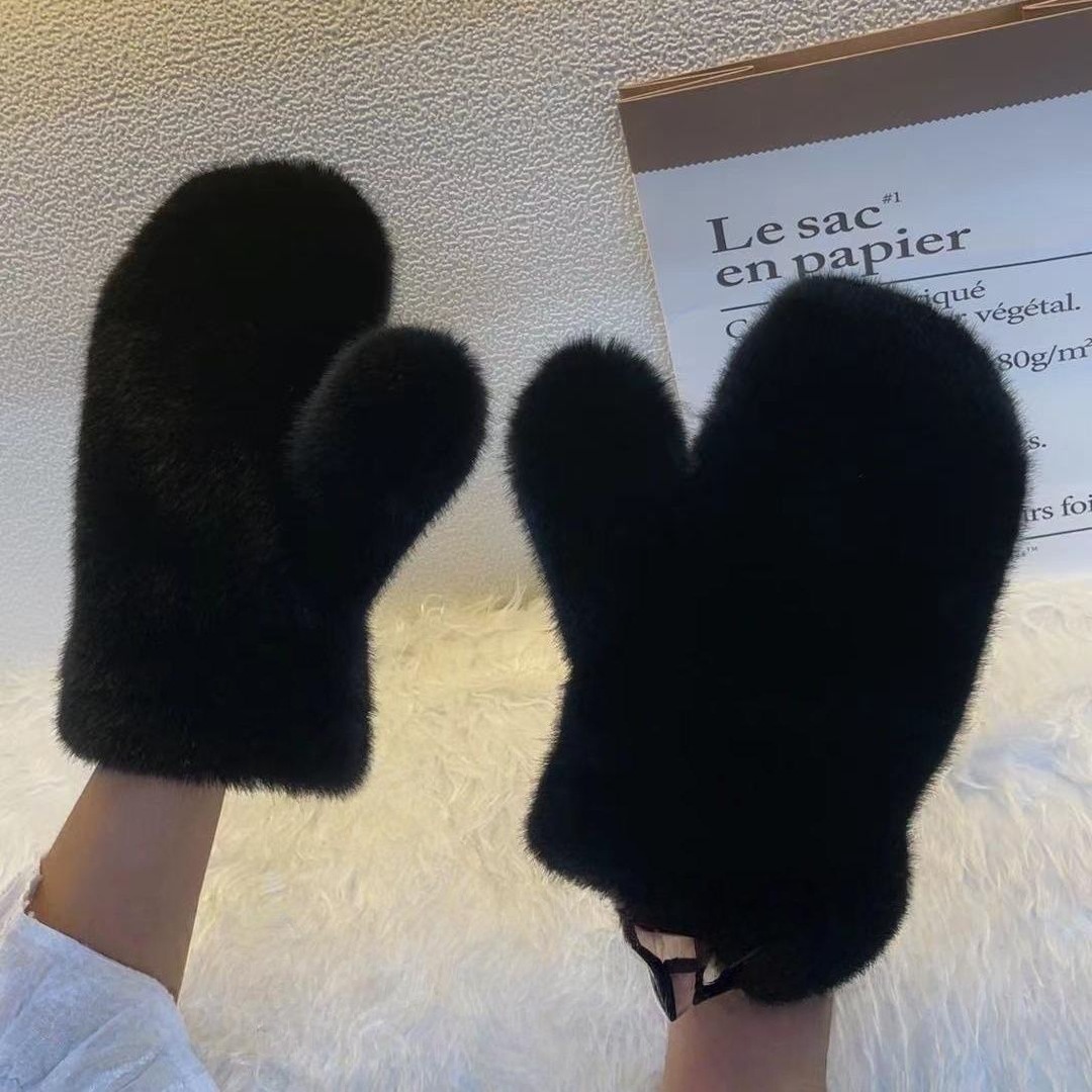두꺼운 모피 신상품 겨울용 모조 밍크 모피 따뜻한 장갑 남녀공용 목걸이형 털 스키 및 자전거 장갑스토어 가기