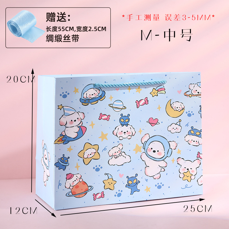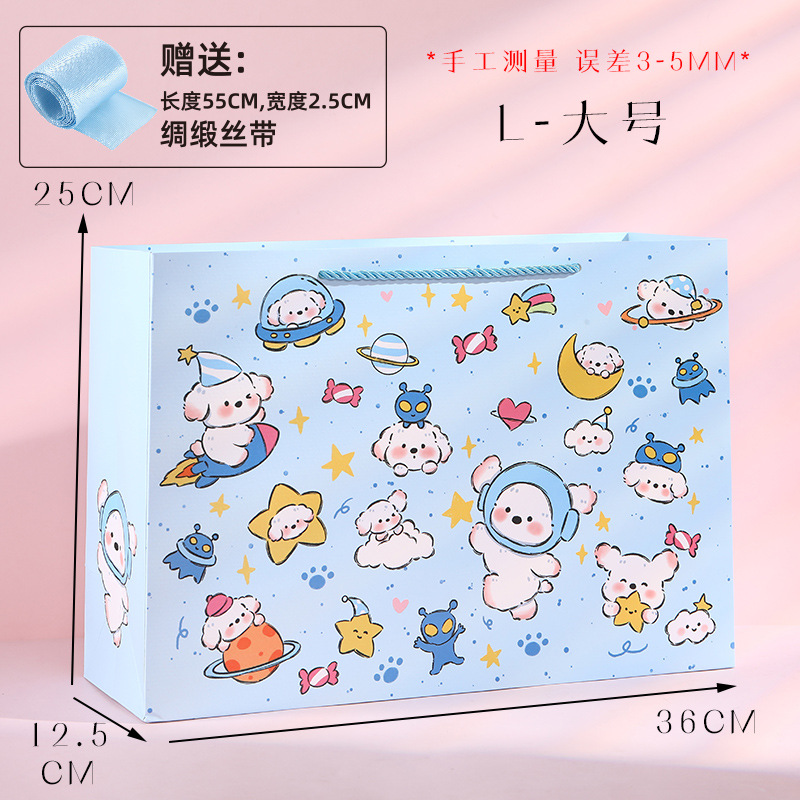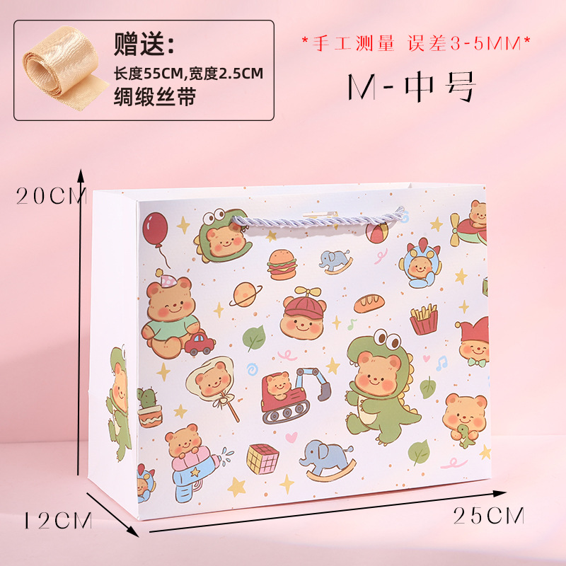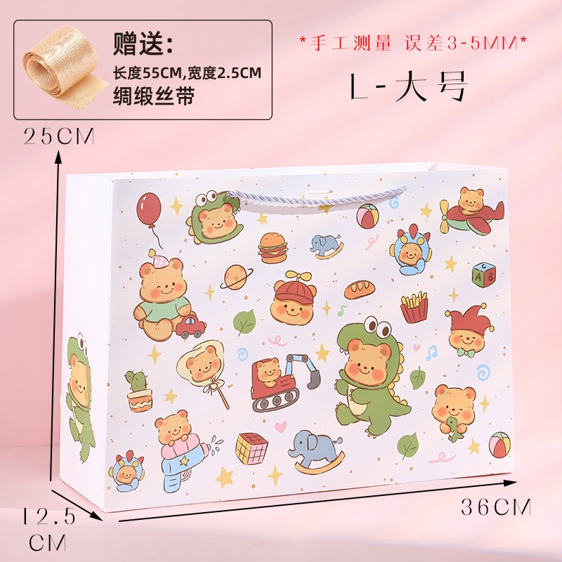 귀여운 만화 선물 포장 가방 어린이 날 선물 가방 양각 공예 핸드백 재고 흰색 골판지 가방스토어 가기