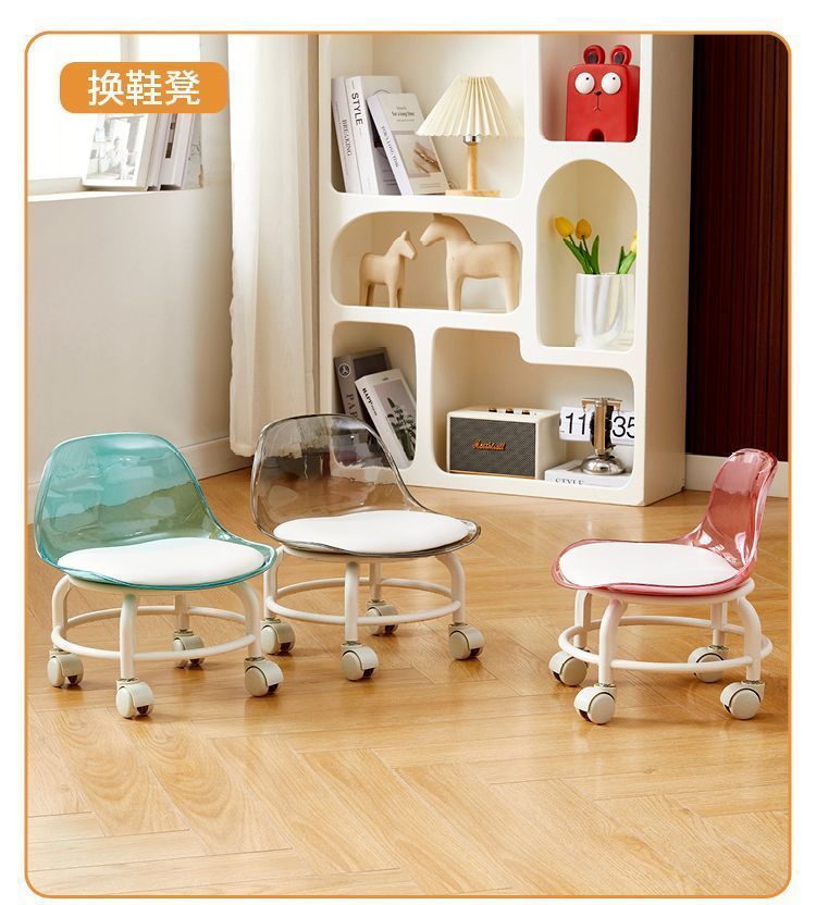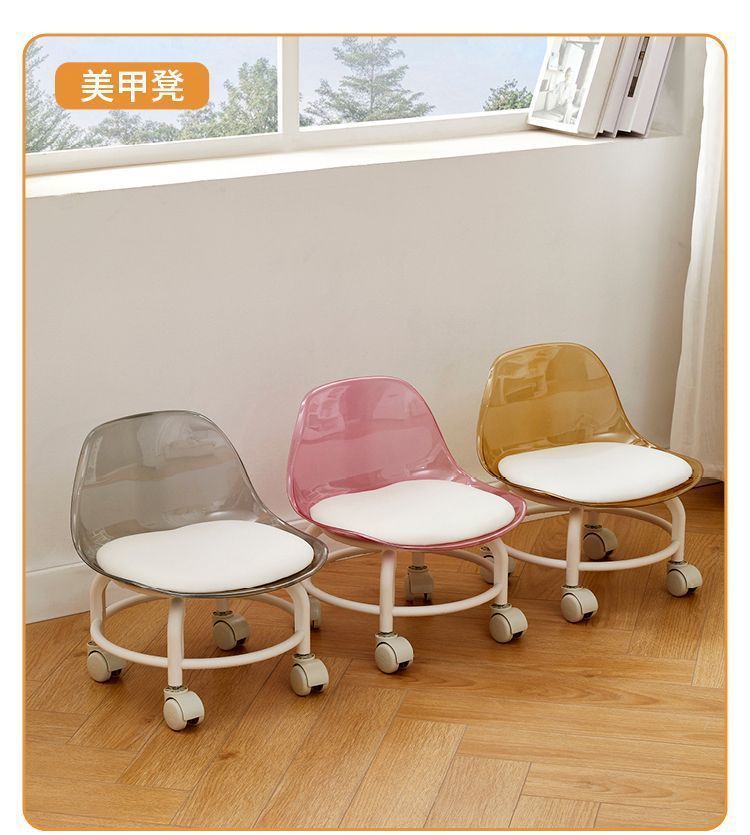 아크릴 작은 의자가 보편적 인 바퀴로 어린이 유아 의자를 음소거 인터넷-유명한 작은 의자 풀리 낮은 의자 아름다운 재봉 의자