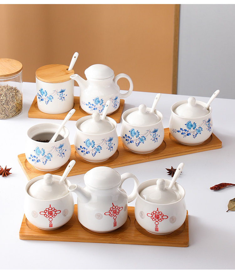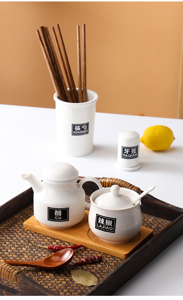 IYR7 조미료 항아리 세트 세라믹 양념 병 항아리 칠리 항아리 주방 상업용 칠리 항아리 식초 이쑤시개 레스토랑 사용