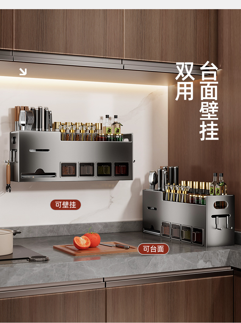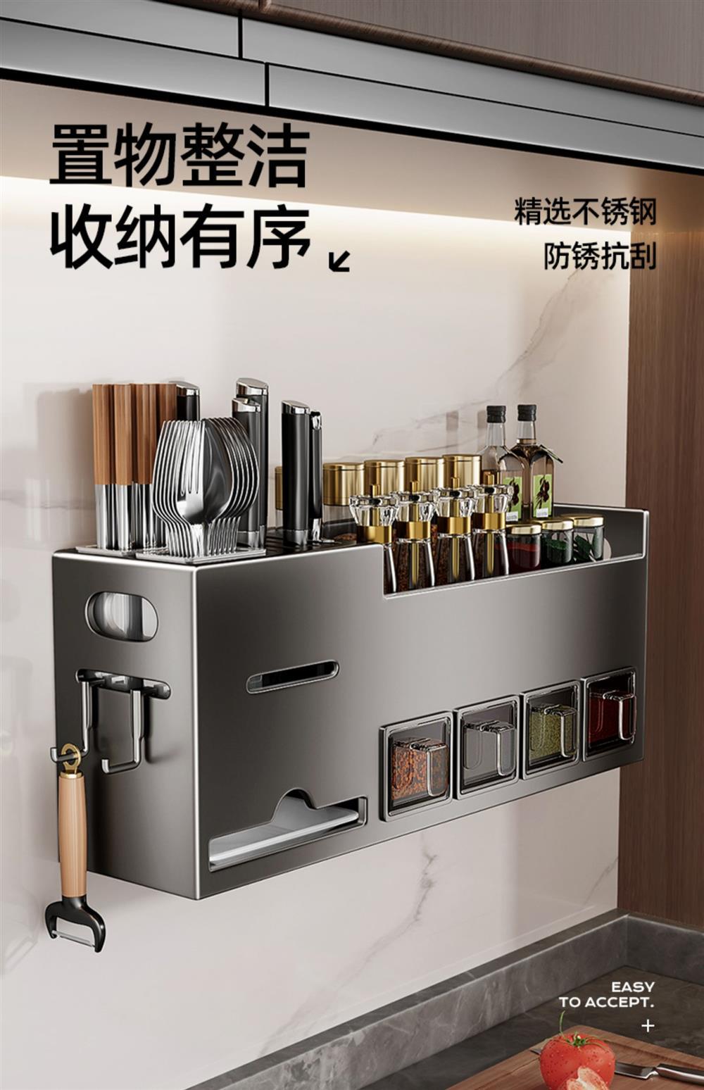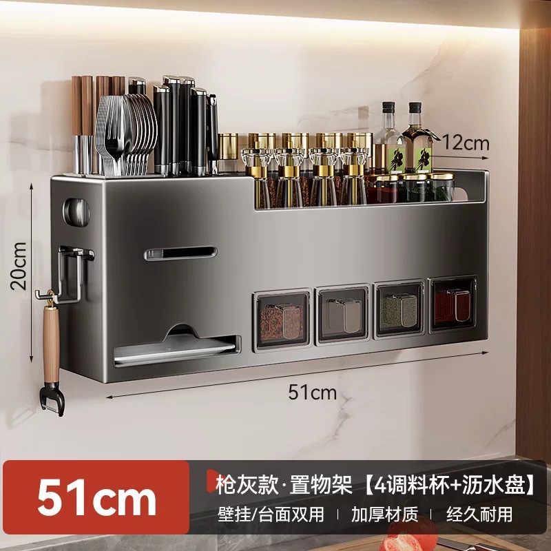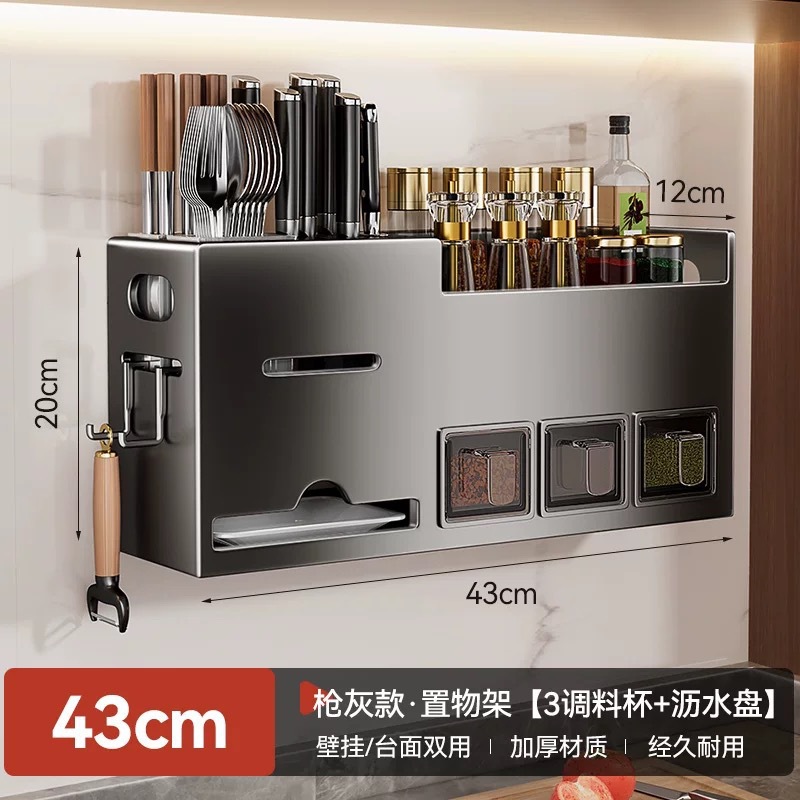 주방선반, 구멍없는 스테인레스 스틸 가정용 벽걸이형 조미료 젓가락 칼홀더 용품 수납선반
