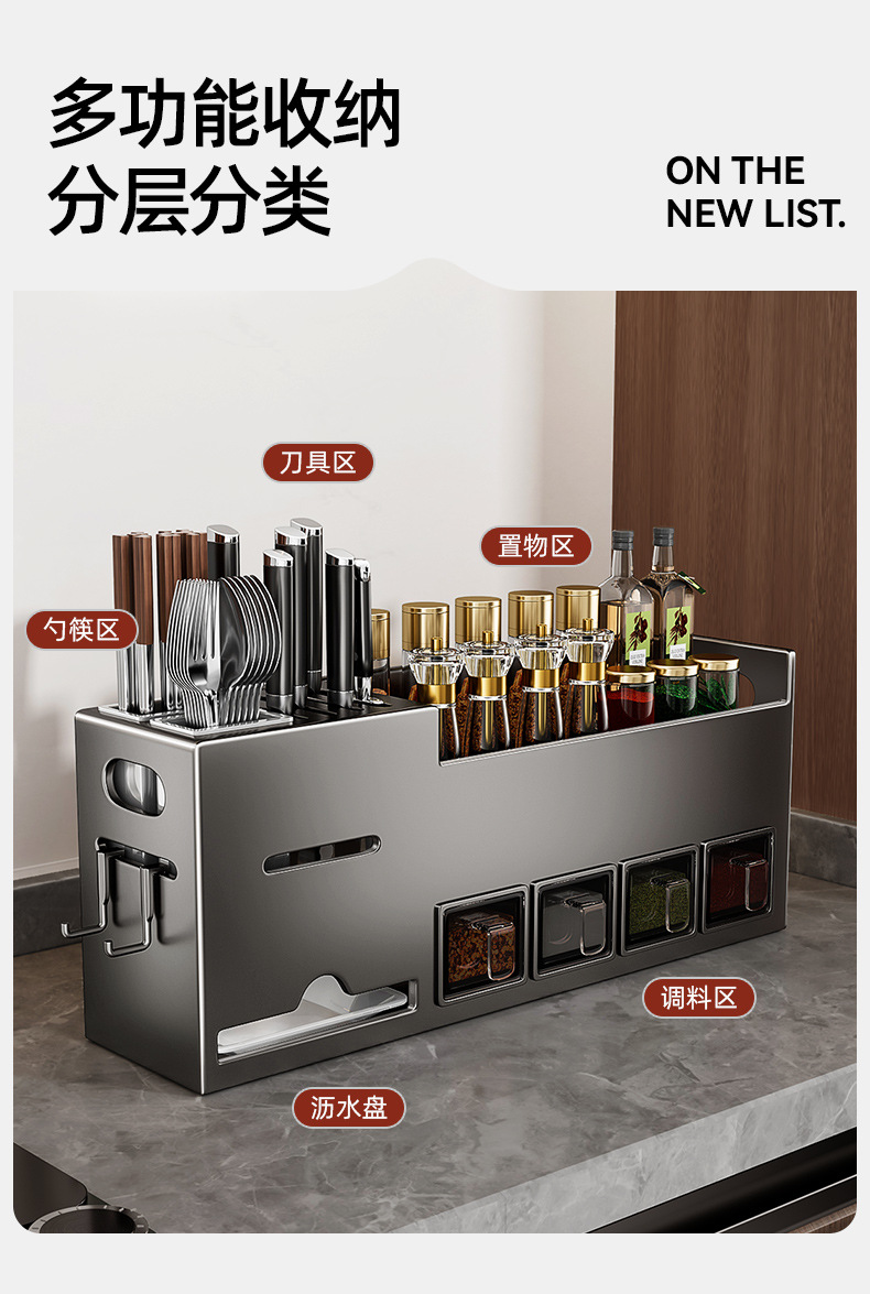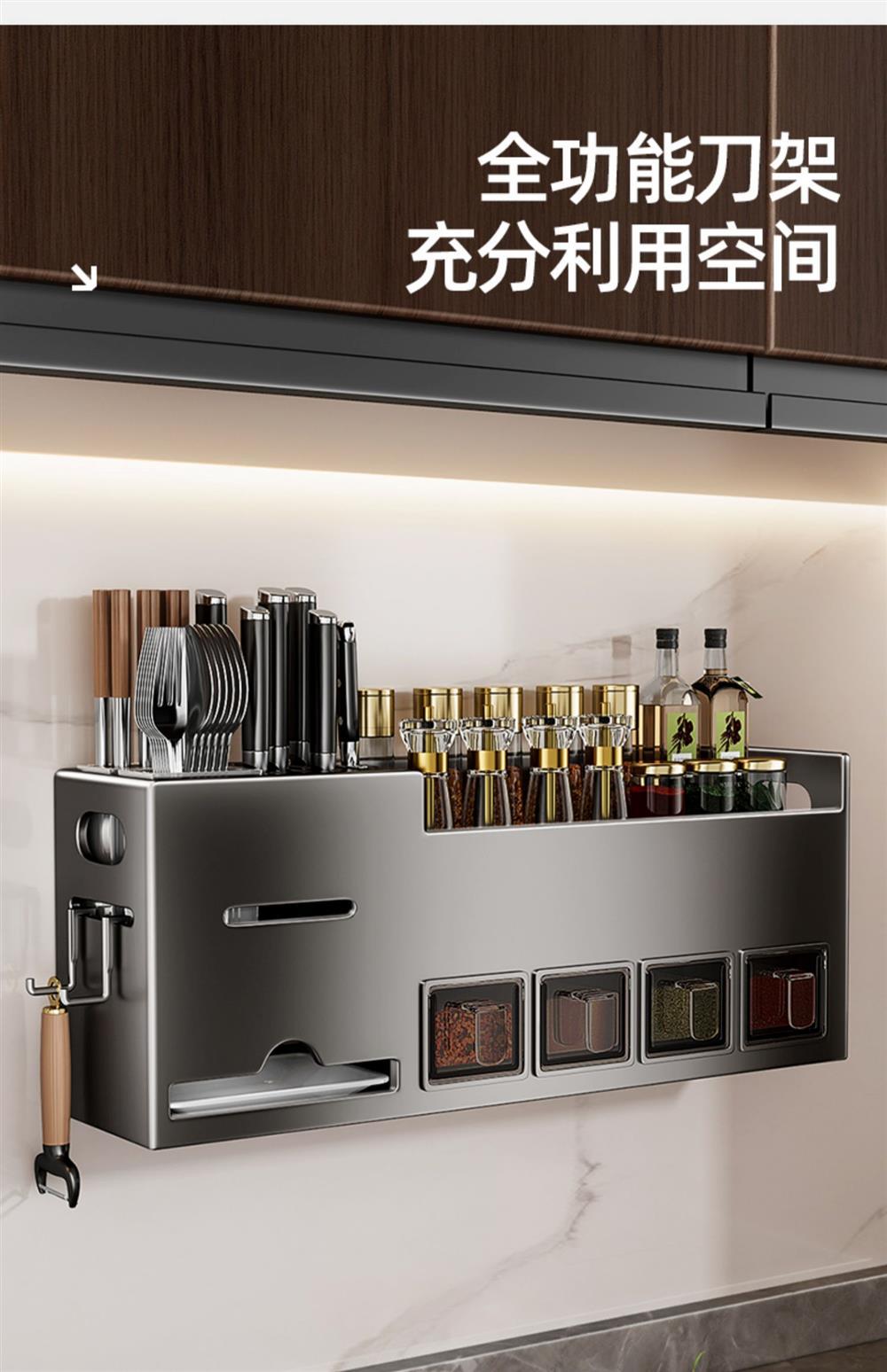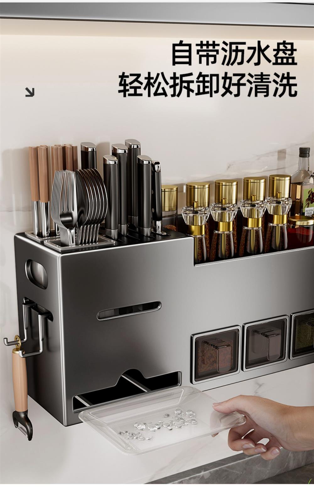 주방선반, 구멍없는 스테인레스 스틸 가정용 벽걸이형 조미료 젓가락 칼홀더 용품 수납선반