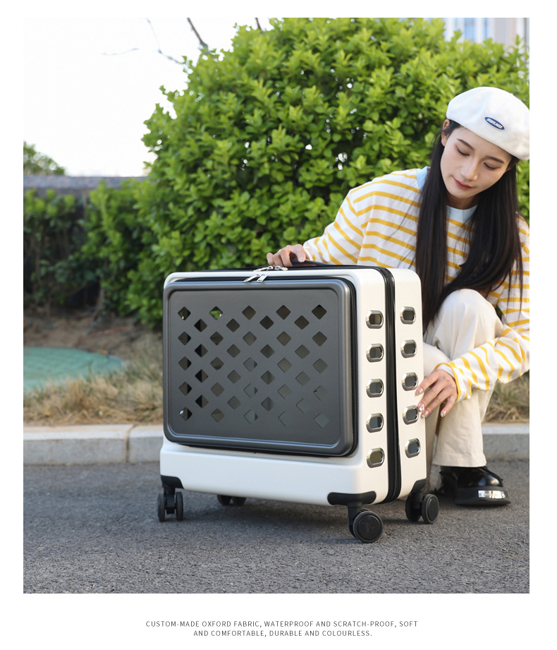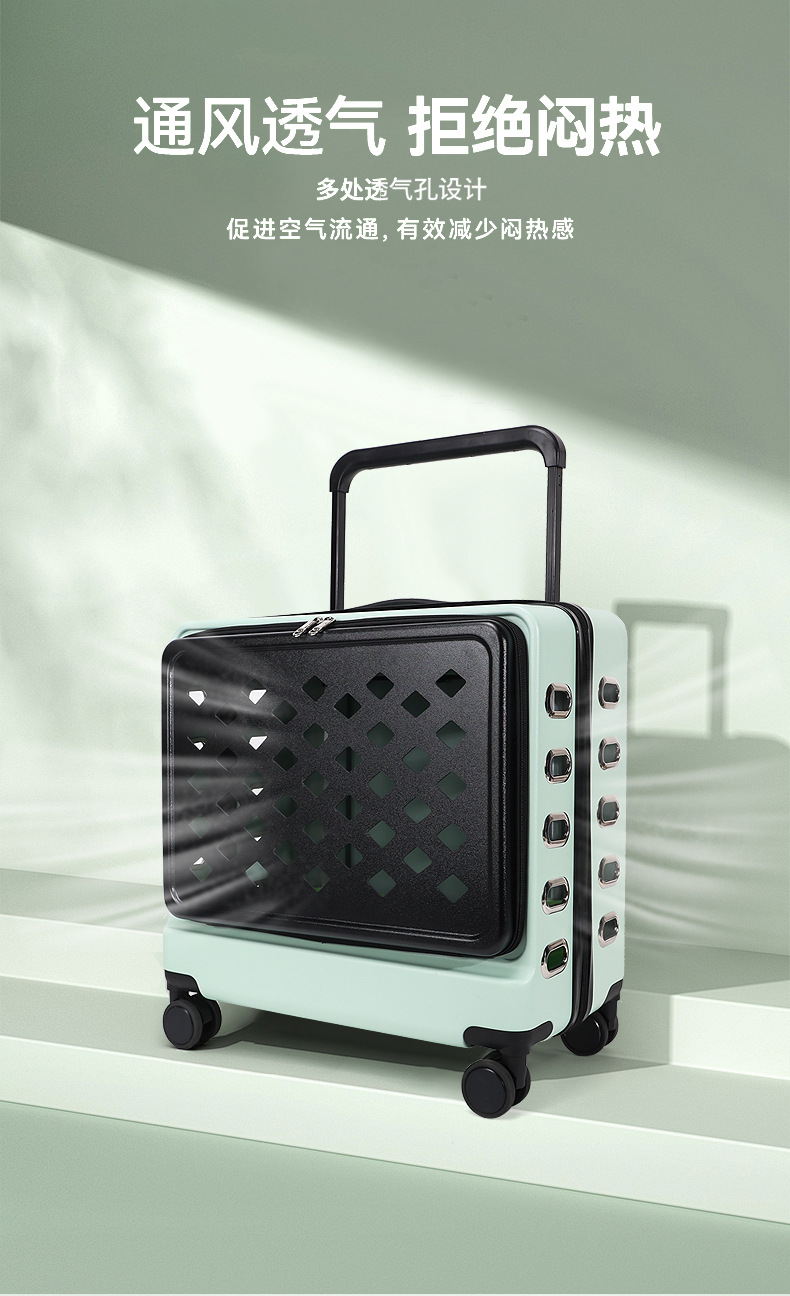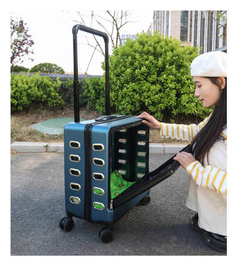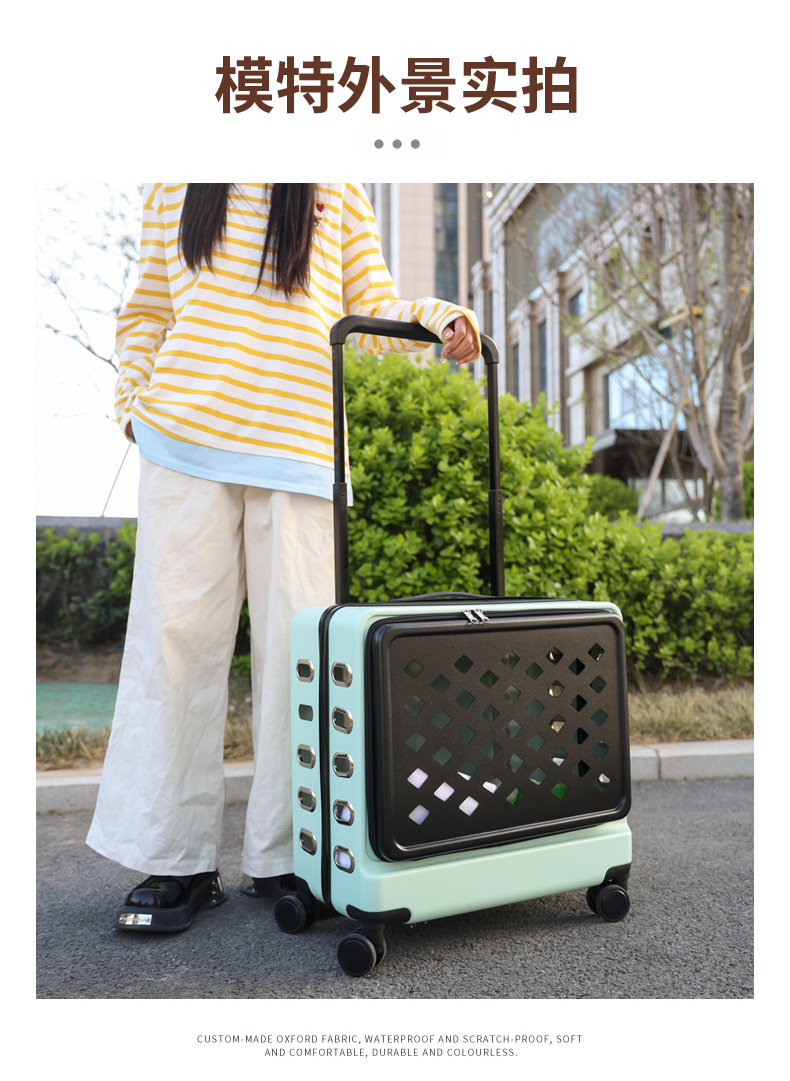 전면 개방형 애완동물 트롤리 케이스, 통기성이 뛰어난 대용량 고양이 항공 케이스, 외출 시 편리한 다기능 트롤리 애완동물 가방