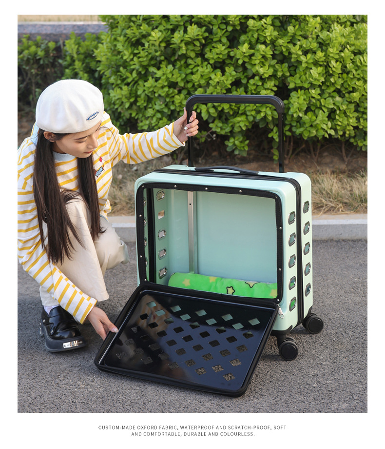 전면 개방형 애완동물 트롤리 케이스, 통기성이 뛰어난 대용량 고양이 항공 케이스, 외출 시 편리한 다기능 트롤리 애완동물 가방스토어 가기