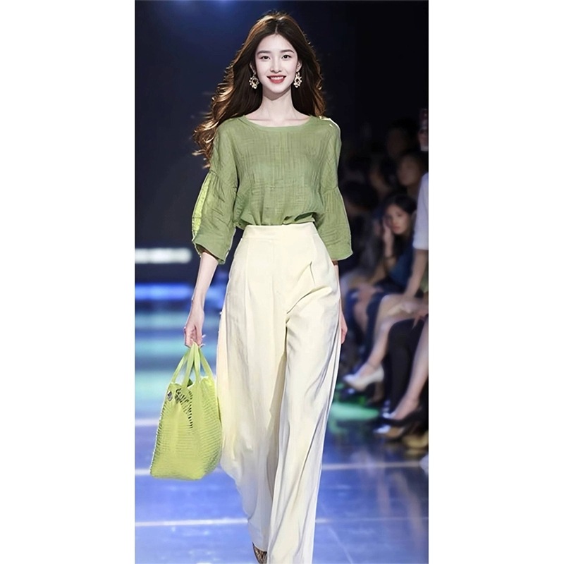 2025 새로운 하이 엔드 슈퍼 잘 생긴 콜드 스타일 독특한 세련된 우아한 투피스 세트 바지 여성용 여름스토어 가기